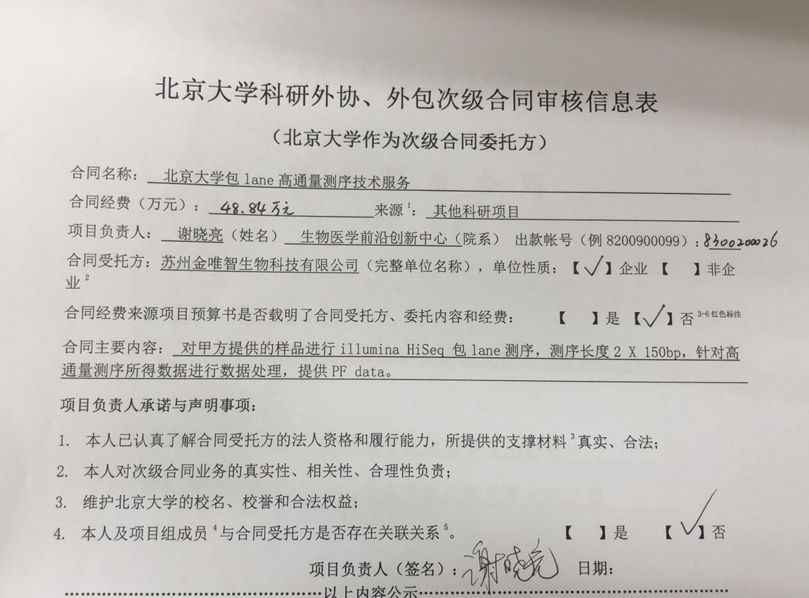 根据《关于北京大学理工科科研次级合同管理的通知》,现将北京大学理工科科研次级合同“北京大学包lane高通量测序技术服务”相关内容予以公示。