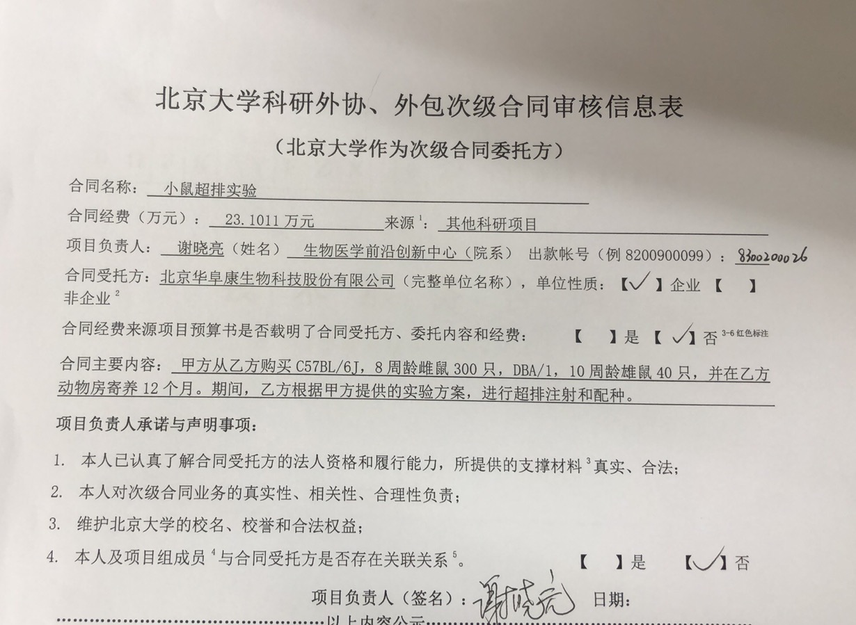 根据《关于北京大学理工科科研次级合同管理的通知》,现将北京大学理工科科研次级合同“小鼠超排实验”相关内容予以公示。
