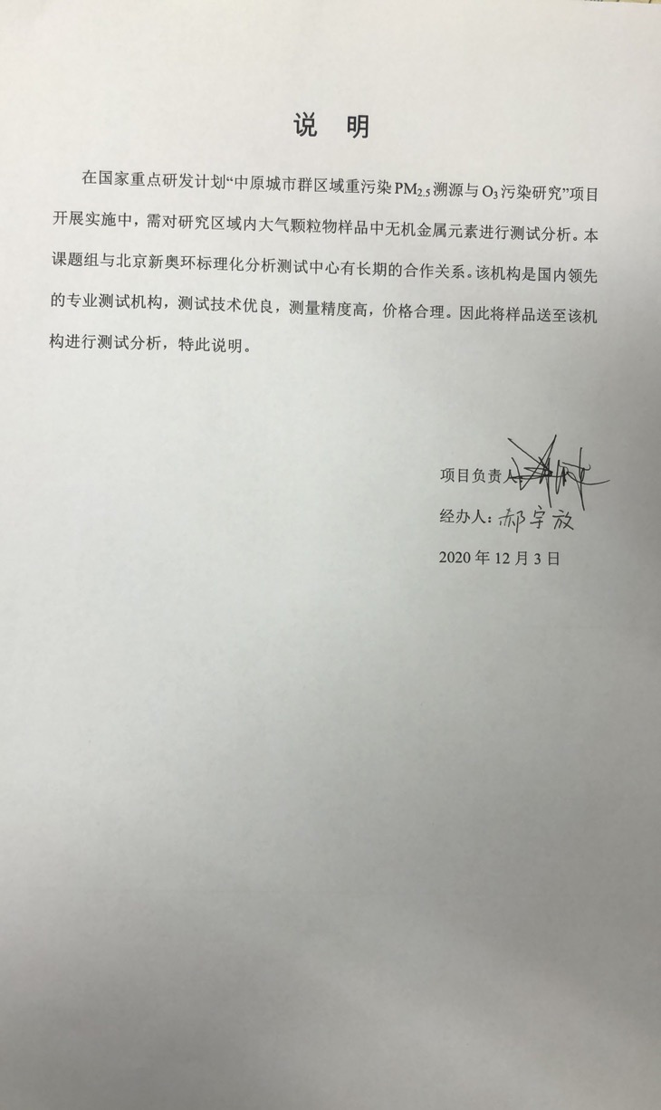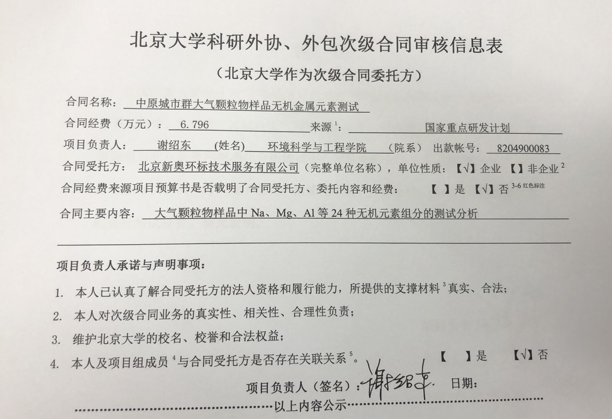 根据《关于北京大学理工科科研次级合同管理的通知》,现将北京大学理工科科研次级合同“中原城市群大气颗粒物样品无机金属元素测试”相关内容予以公示。