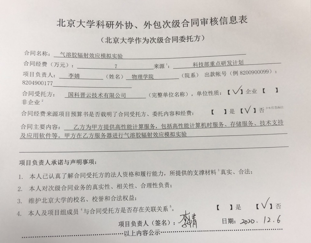 根据《关于北京大学理工科科研次级合同管理的通知》,现将北京大学理工科科研次级合同“气溶胶辐射效应模拟实验”相关内容予以公示。