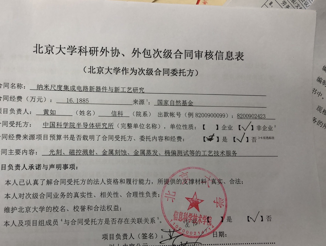 根据《关于北京大学理工科科研次级合同管理的通知》,现将北京大学理工科科研次级合同“纳米尺度集成电路新器件与新工艺研究”相关内容予以公示。