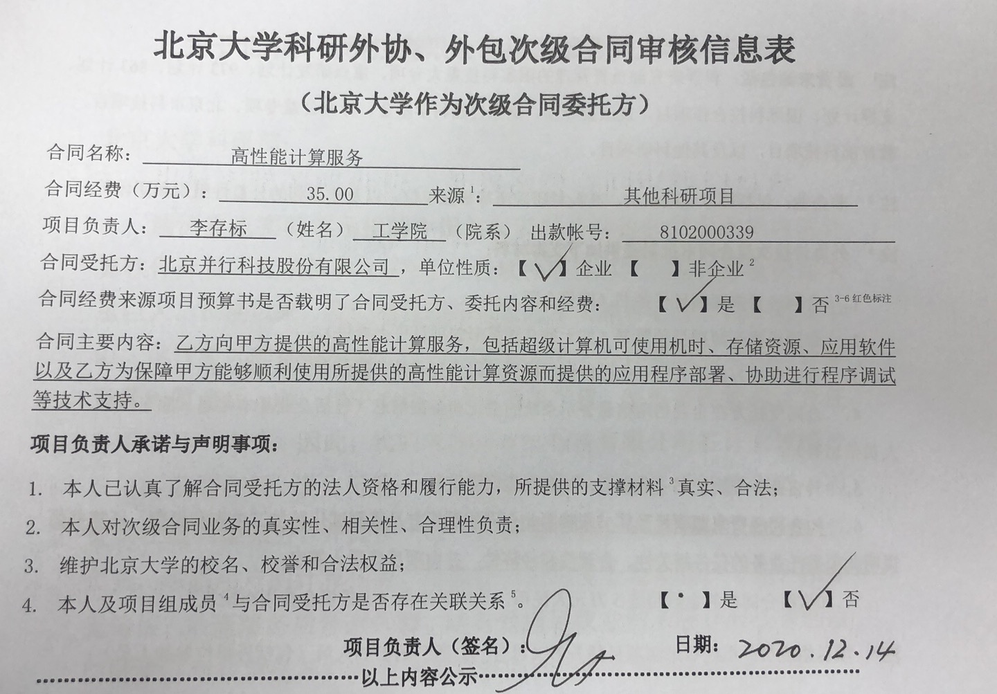 根据《关于北京大学理工科科研次级合同管理的通知》,现将北京大学理工科科研次级合同“高性能计算服务”相关内容予以公示。