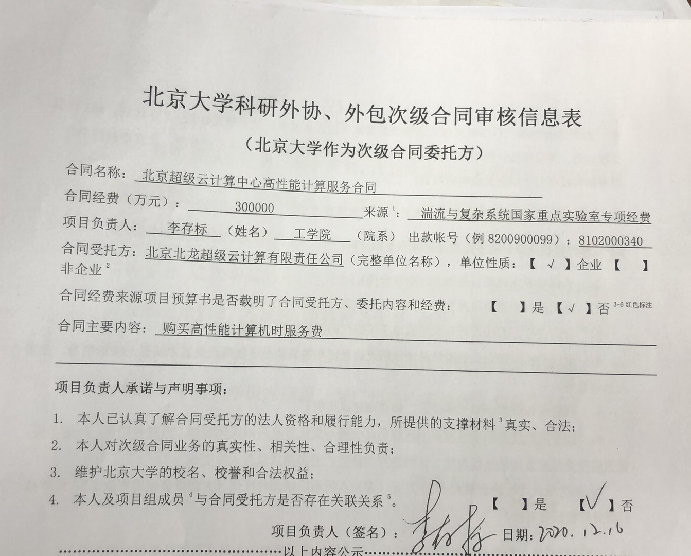 根据《关于北京大学理工科科研次级合同管理的通知》,现将北京大学理工科科研次级合同“北京超级云计算中心高性能计算服务合同”相关内容予以公示。