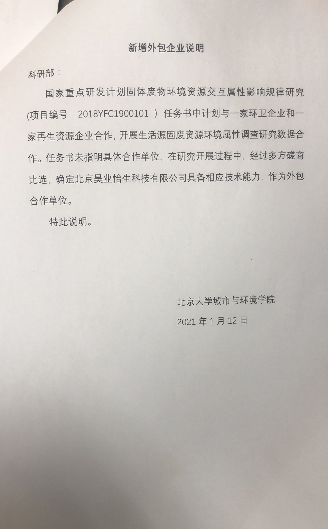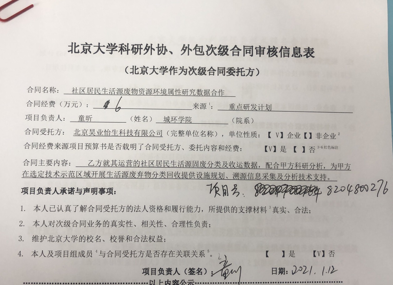 根据《关于北京大学理工科科研次级合同管理的通知》,现将北京大学理工科科研次级合同“社区居民生活源废物资源环境属性研究数据合作”相关内容予以公示。