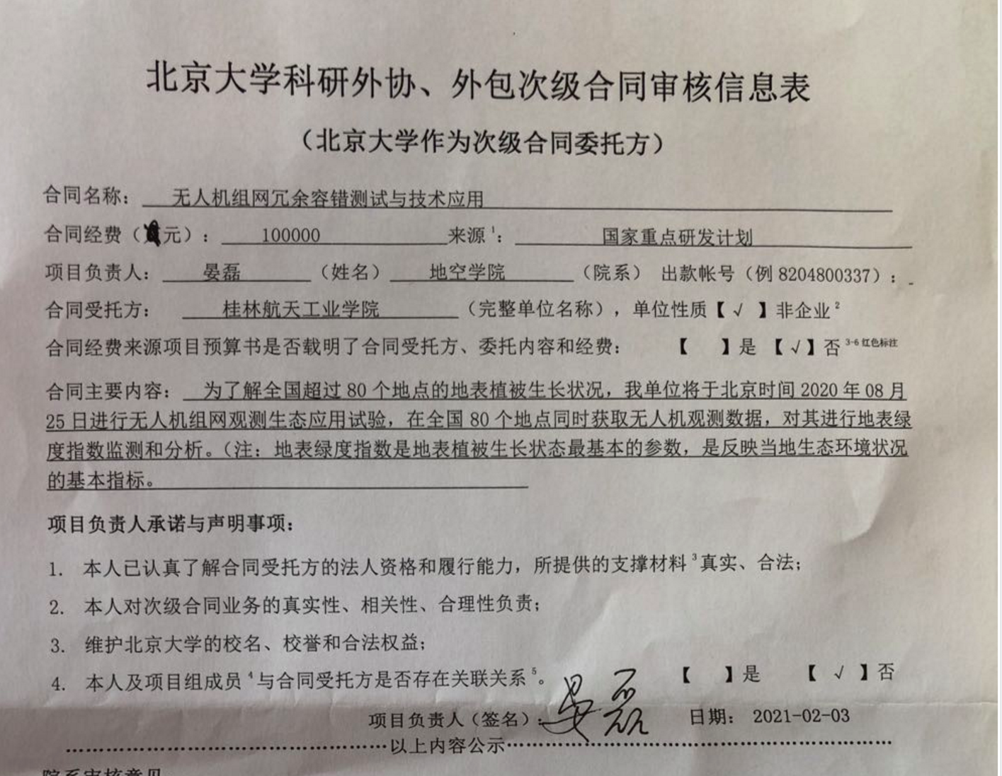 根据《关于北京大学理工科科研次级合同管理的通知》,现将北京大学理工科科研次级合同“无人机组网冗余容错测试与技术应用”相关内容予以公示。