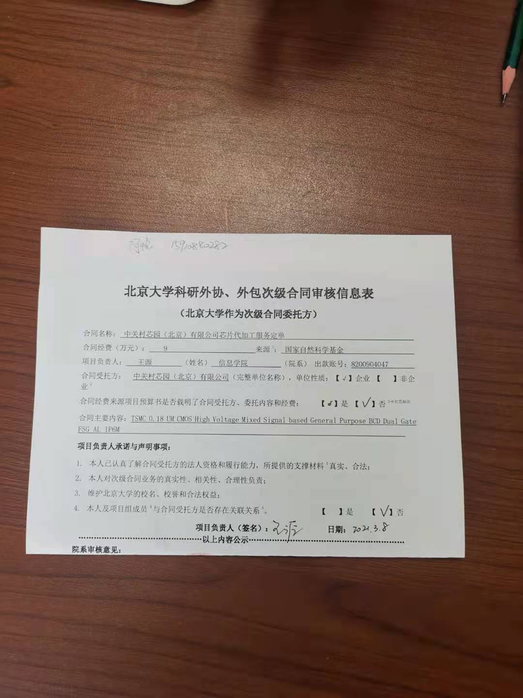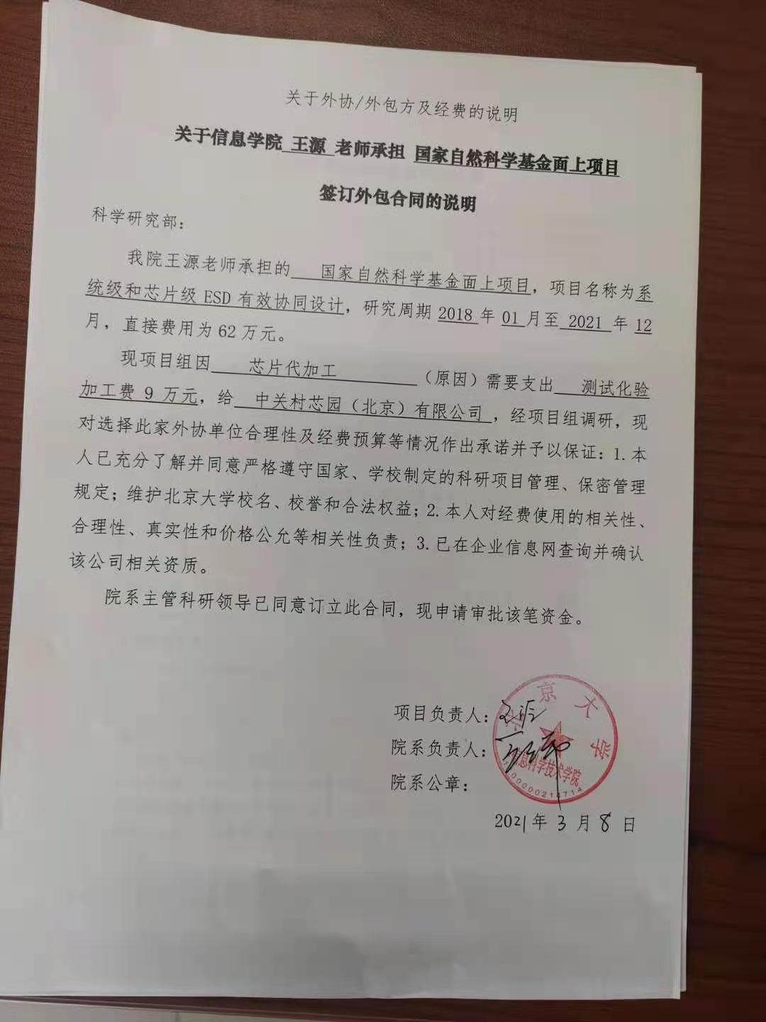 北京大学理工科科研次级合同“ 中关村芯园(北京)有限公司芯片代加工服务订单”公示