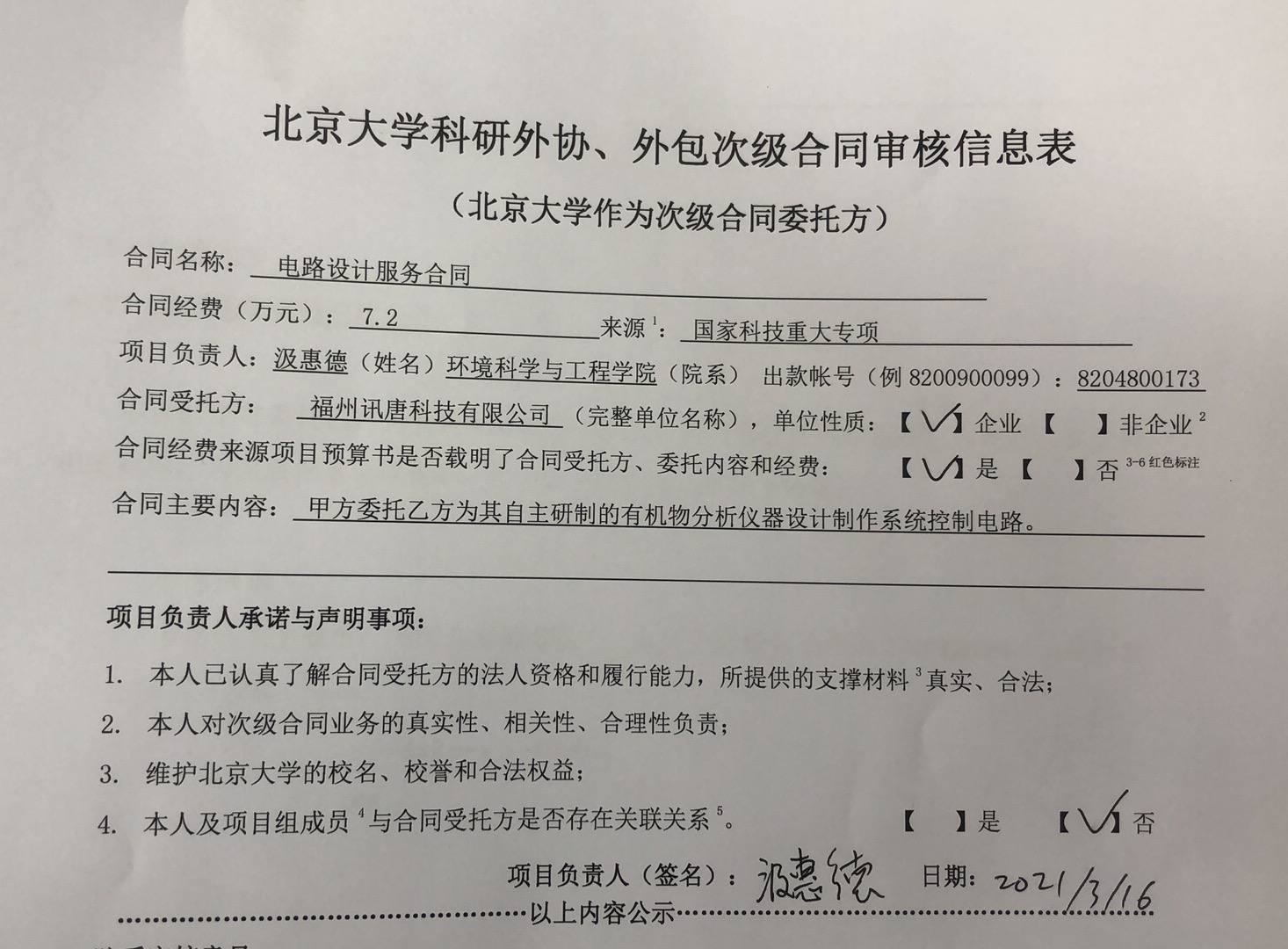 根据《关于北京大学理工科科研次级合同管理的通知》,现将北京大学理工科科研次级合同“电路设计服务合同”相关内容予以公示。