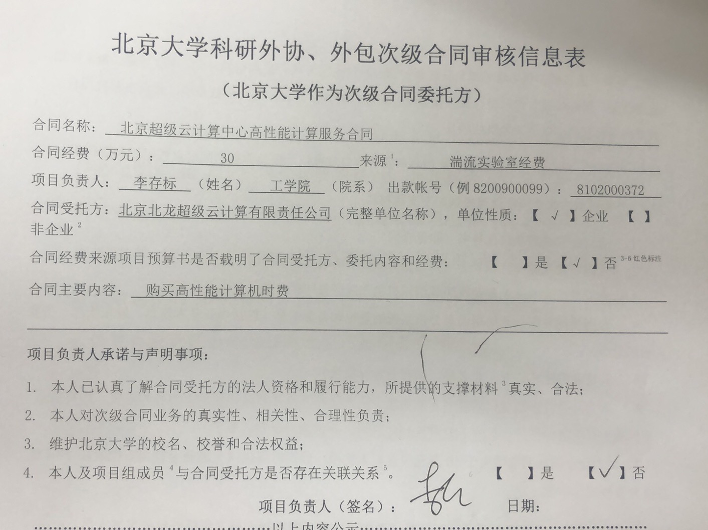 根据《关于北京大学理工科科研次级合同管理的通知》,现将北京大学理工科科研次级合同“北京超级云计算中心高性能计算服务合同”相关内容予以公示。