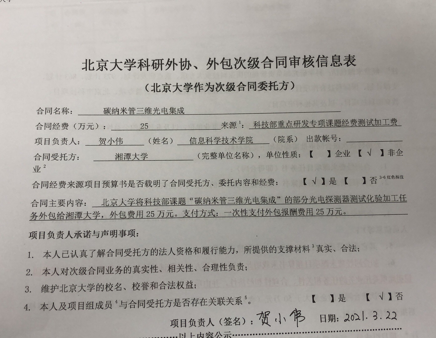 根据《关于北京大学理工科科研次级合同管理的通知》,现将北京大学理工科科研次级合同“碳纳米管三维光电集成”相关内容予以公示。