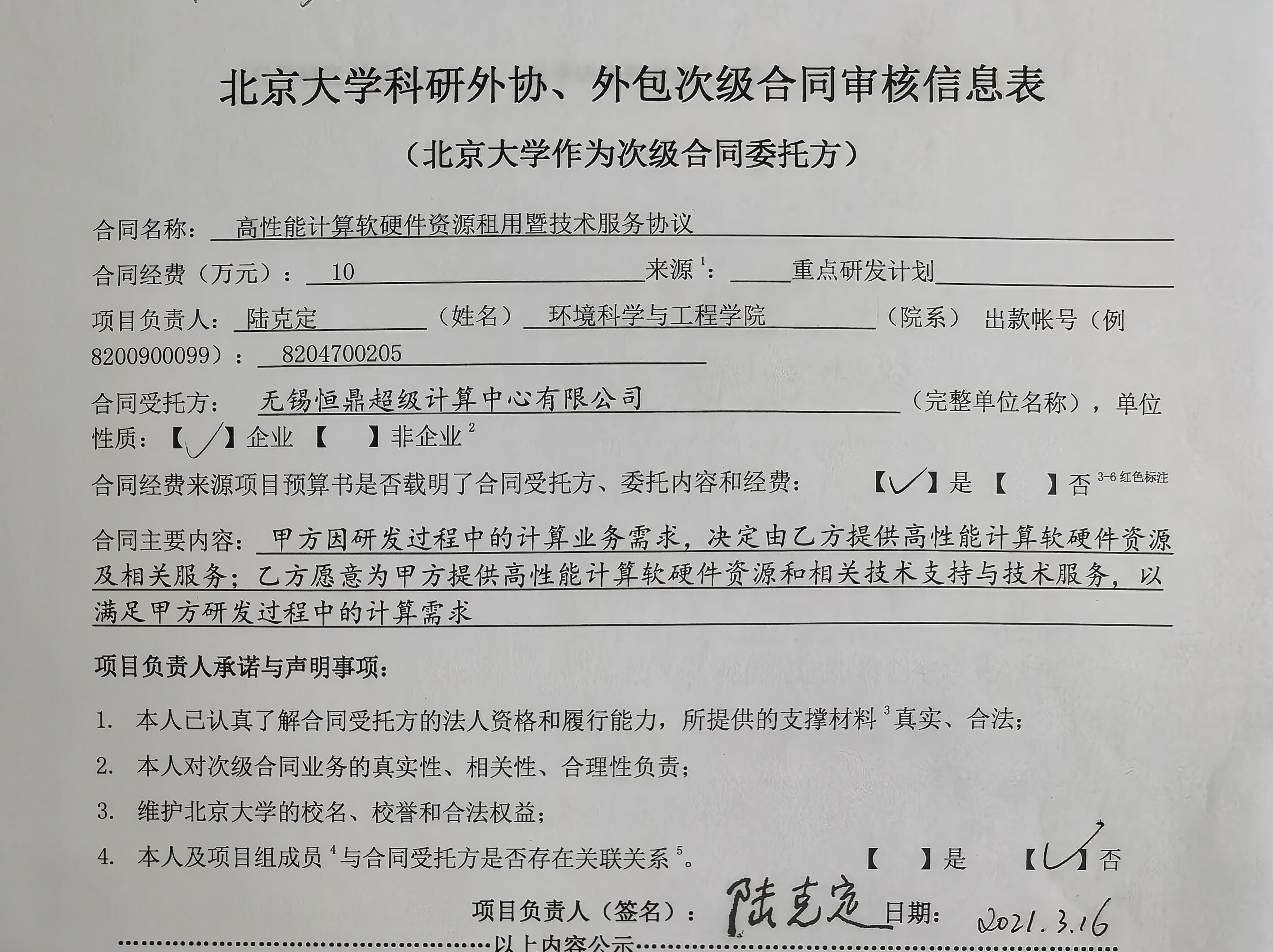 根据《关于北京大学理工科科研次级合同管理的通知》,现将北京大学理工科科研次级合同“高性能计算软硬件资源租用暨技术服务协议”的相关内容予以公示。