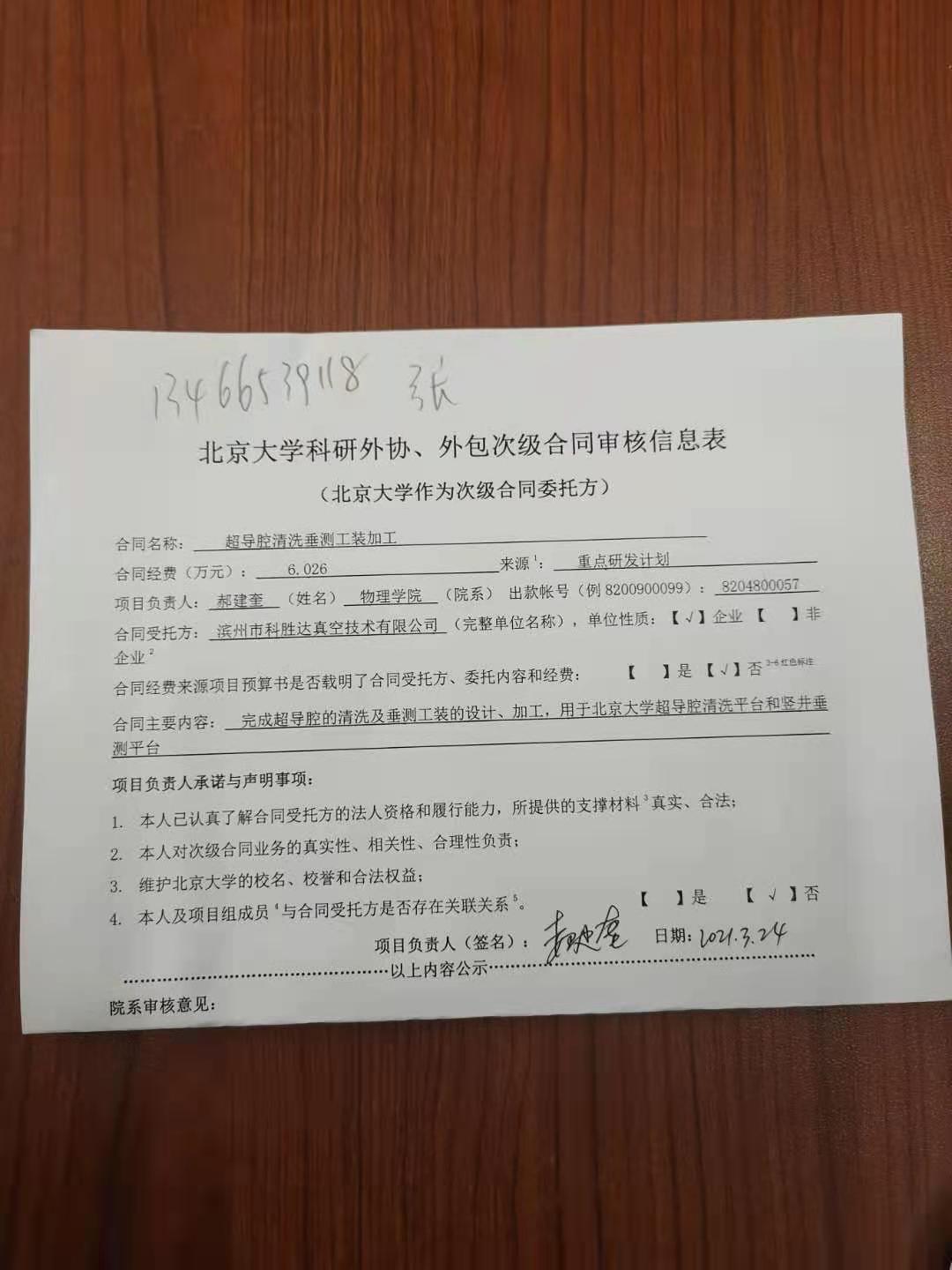 根据《关于北京大学理工科科研次级合同管理的通知》,现将北京大学理工科科研次级合同超导腔清洗垂测工装加工”的相关内容予以公示。公示时间:2021年03月26日-2021年03月30日(3个工作日)。合同相关纸质材料可经预约后到勺园5乙330办公室进行查阅。