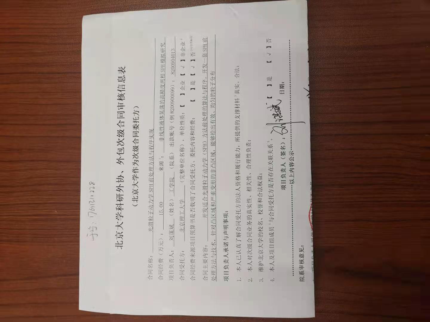根据《关于北京大学理工科科研次级合同管理的通知》,现将北京大学理工科科研次级合同光滑粒子动力学SPH前处理方法与程序实现”的相关内容予以公示。公示时间:2021年03月26日-2021年03月30日(3个工作日)。合同相关纸质材料可经预约后到勺园5乙330办公室进行查阅。