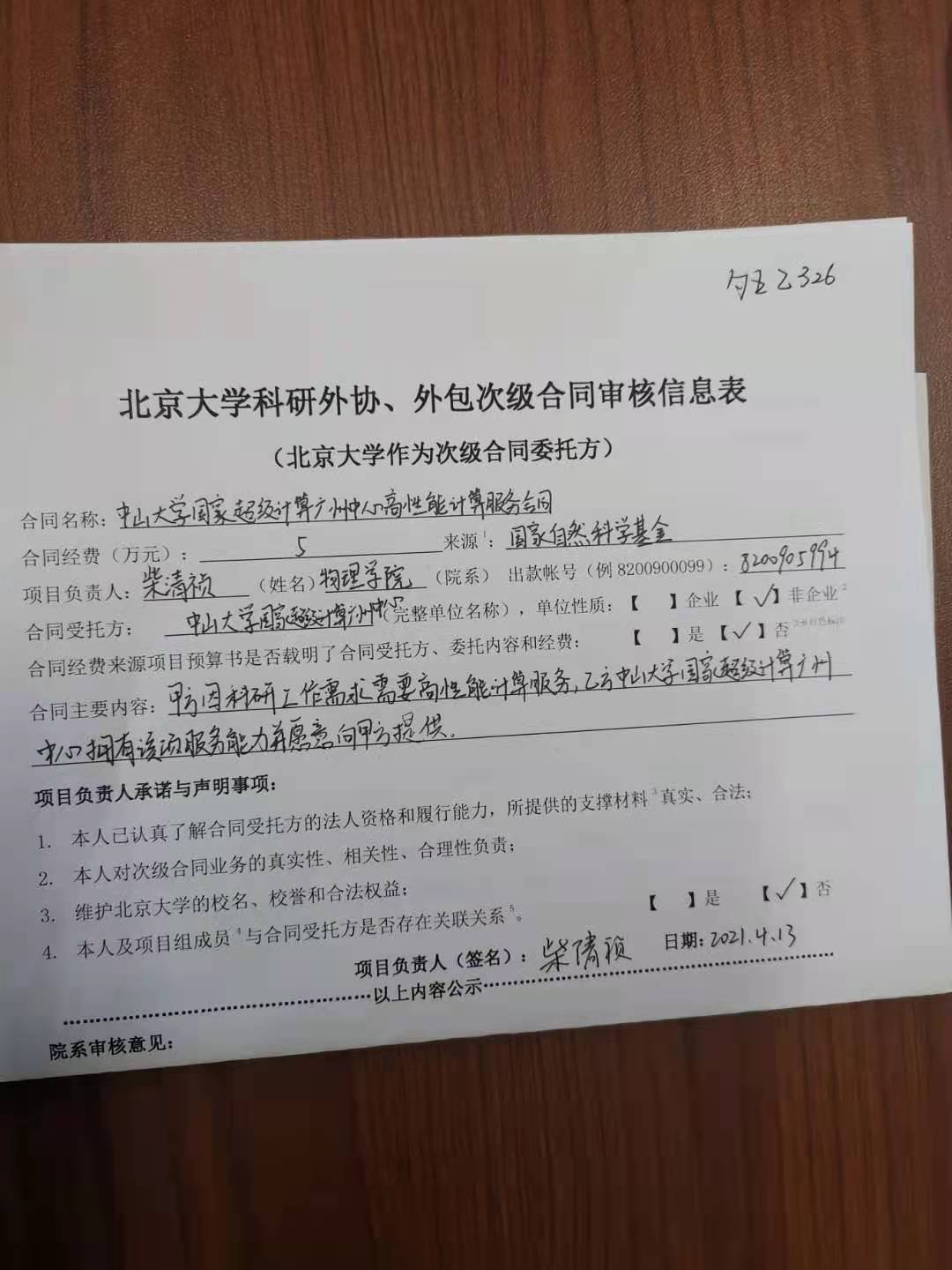 根据《关于北京大学理工科科研次级合同管理的通知》,现将北京大学理工科科研次级合同中山大学国家超级计算广州中心高性能计算服务合同”的相关内容予以公示。公示时间:2021年04月13日-2021年04月15日(3个工作日)。合同相关纸质材料可经预约后到勺园5乙330办公室进行查阅。