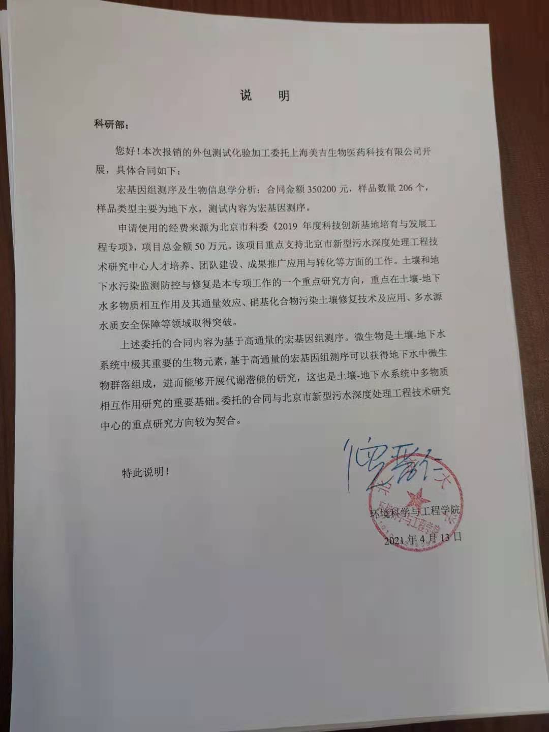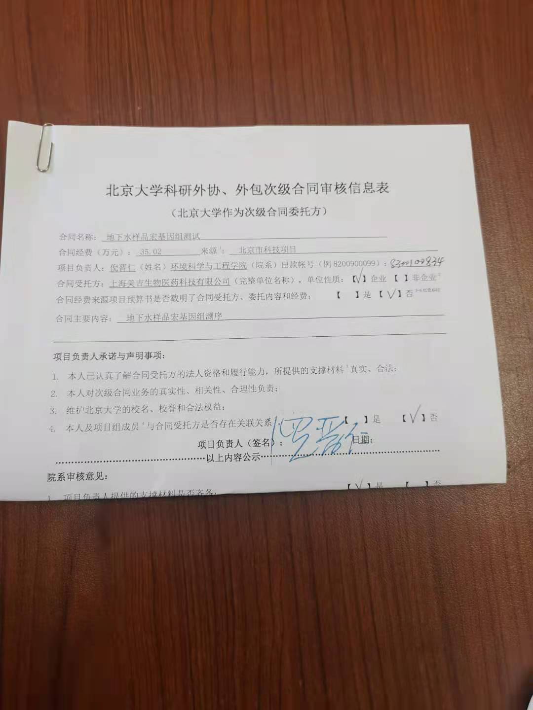 根据《关于北京大学理工科科研次级合同管理的通知》,现将北京大学理工科科研次级合同地下水样品宏基因组测试”的相关内容予以公示。公示时间:2021年04月14日-2021年04月16日(3个工作日)。合同相关纸质材料可经预约后到勺园5乙330办公室进行查阅。