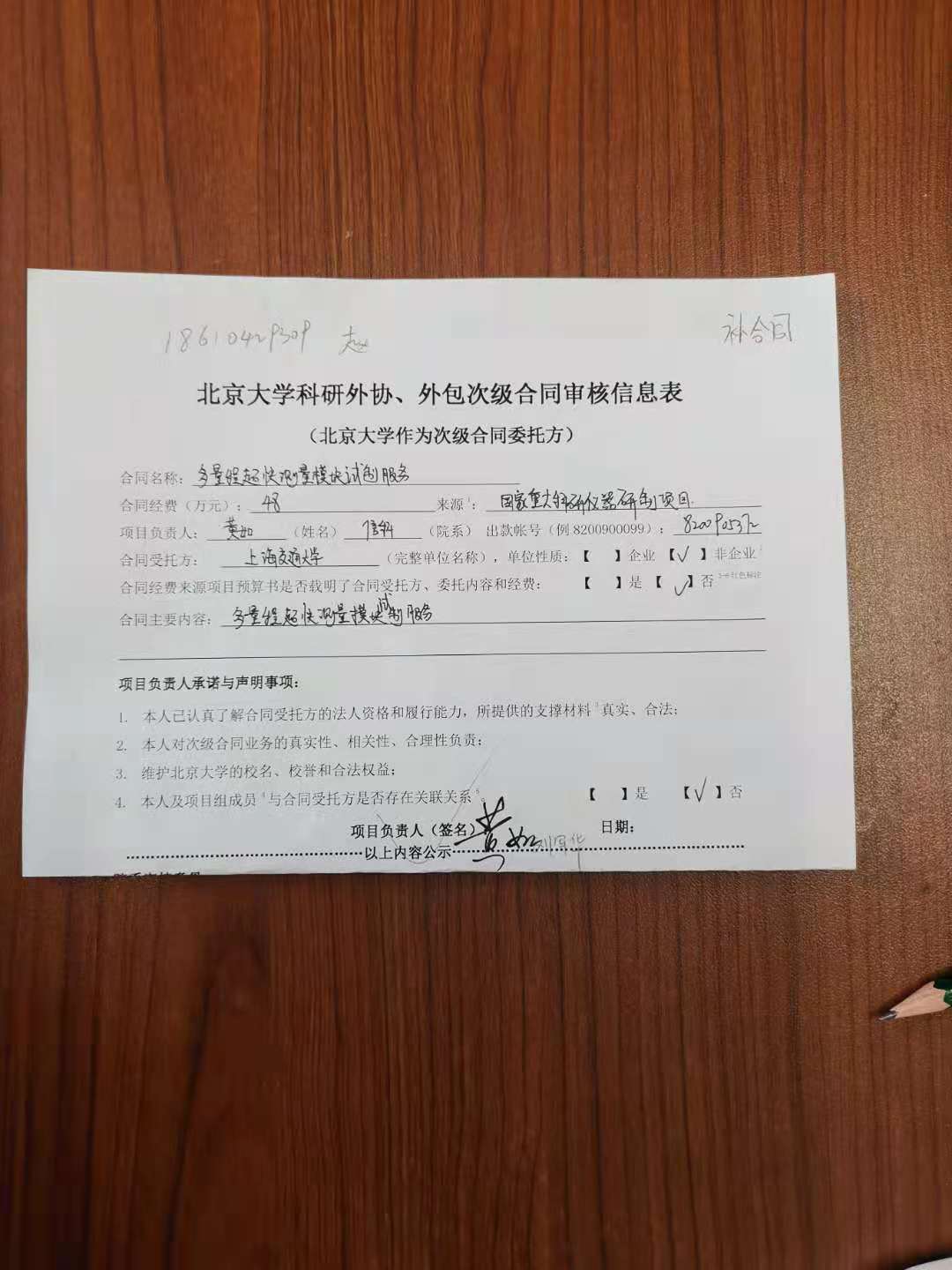根据《关于北京大学理工科科研次级合同管理的通知》,现将北京大学理工科科研次级合同多量程超快测量模块试制服务”的相关内容予以公示。公示时间:2021年05月04日-2021年05月06日(3个工作日)。合同相关纸质材料可经预约后到勺园5乙330办公室进行查阅。