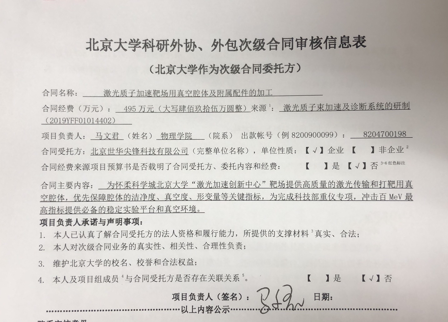 根据《关于北京大学理工科科研次级合同管理的通知》,现将北京大学理工科科研次级合同“激光质子加速靶场用真空腔体及附属配件的加工”相关内容予以公示。