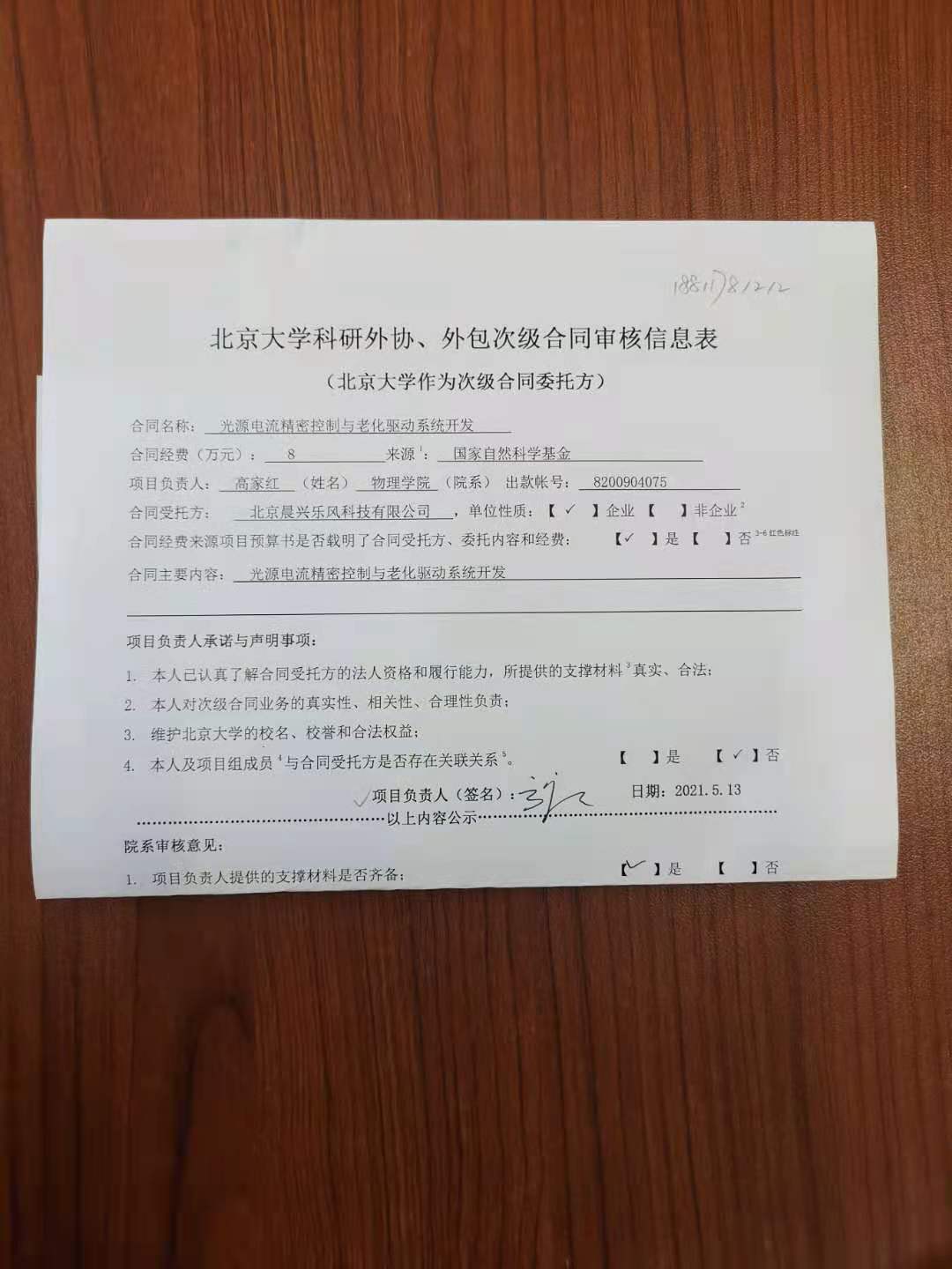 根据《关于北京大学理工科科研次级合同管理的通知》,现将北京大学理工科科研次级合同光源电流精密控制与老化驱动系统开发”的相关内容予以公示。公示时间:2021年05月18日-2021年05月20日(3个工作日)。合同相关纸质材料可经预约后到勺园5乙330办公室进行查阅。