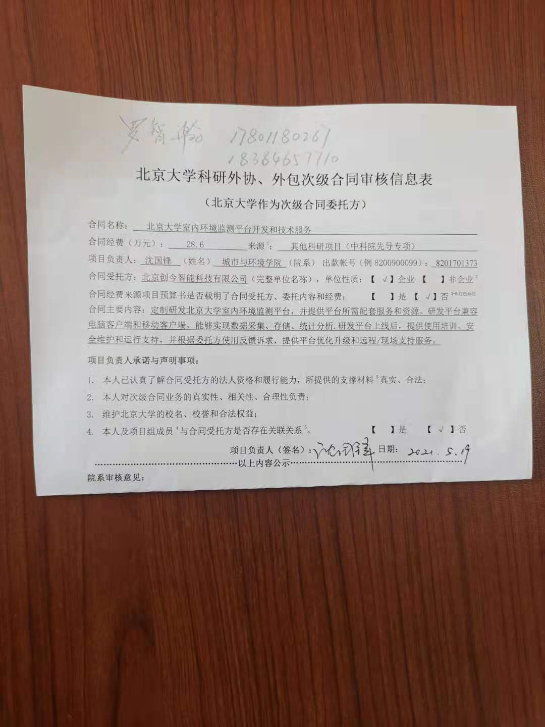 根据《关于北京大学理工科科研次级合同管理的通知》,现将北京大学理工科科研次级合同北京大学室内环境监测平台开发和技术服务合同”的相关内容予以公示。公示时间:2021年05月20日-2021年05月24日(3个工作日)。合同相关纸质材料可经预约后到勺园5乙330办公室进行查阅。