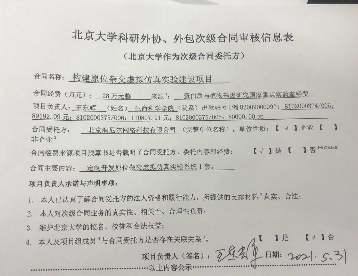 根据《关于北京大学理工科科研次级合同管理的通知》,现将北京大学理工科科研次级合同“构建原位杂交虚拟仿真实验建设项目”相关内容予以公示。