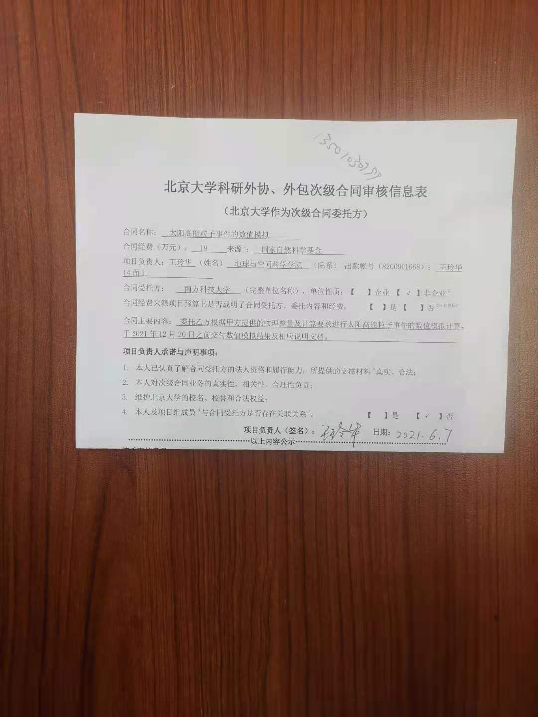 根据《关于北京大学理工科科研次级合同管理的通知》,现将北京大学理工科科研次级合同太阳高能粒子事件的数值模拟”的相关内容予以公示。公示时间:2021年06月11日-2021年06月15日(3个工作日)。合同相关纸质材料可经预约后到勺园5乙330办公室进行查阅。