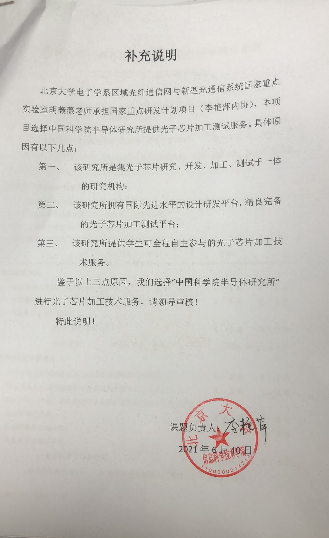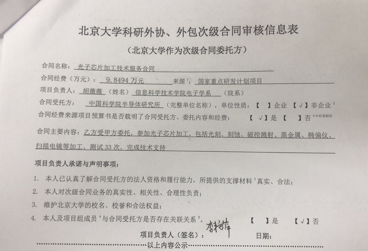 根据《关于北京大学理工科科研次级合同管理的通知》,现将北京大学理工科科研次级合同“光子芯片加工技术服务合同”相关内容予以公示。