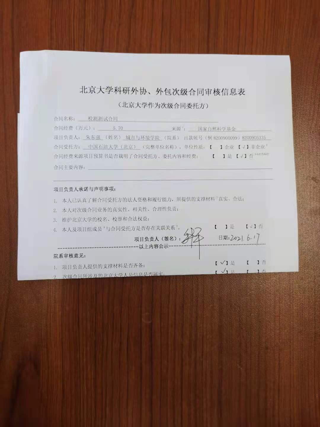 根据《关于北京大学理工科科研次级合同管理的通知》,现将北京大学理工科科研次级合同检测测试合同”的相关内容予以公示。公示时间:2021年06月17日-2021年06月21日(3个工作日)。合同相关纸质材料可经预约后到勺园5乙330办公室进行查阅。