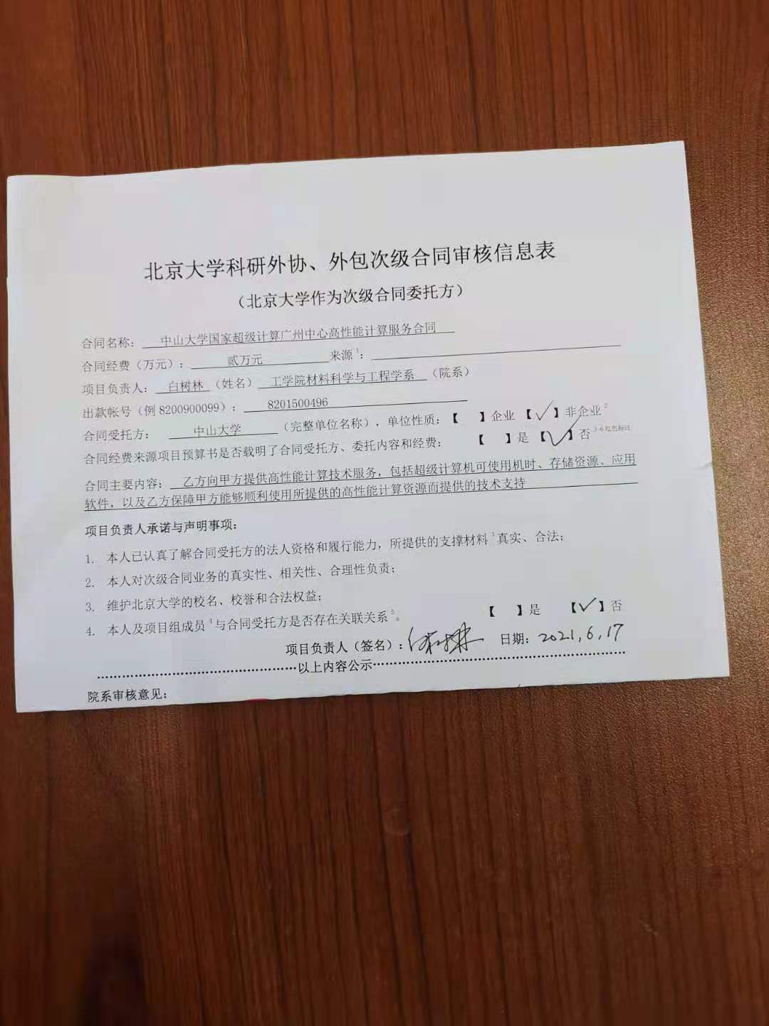 根据《关于北京大学理工科科研次级合同管理的通知》,现将北京大学理工科科研次级合同中山大学国家超级计算广州中心高性能计算服务合同”的相关内容予以公示。公示时间:2021年06月17日-2021年06月21日(3个工作日)。合同相关纸质材料可经预约后到勺园5乙330办公室进行查阅。