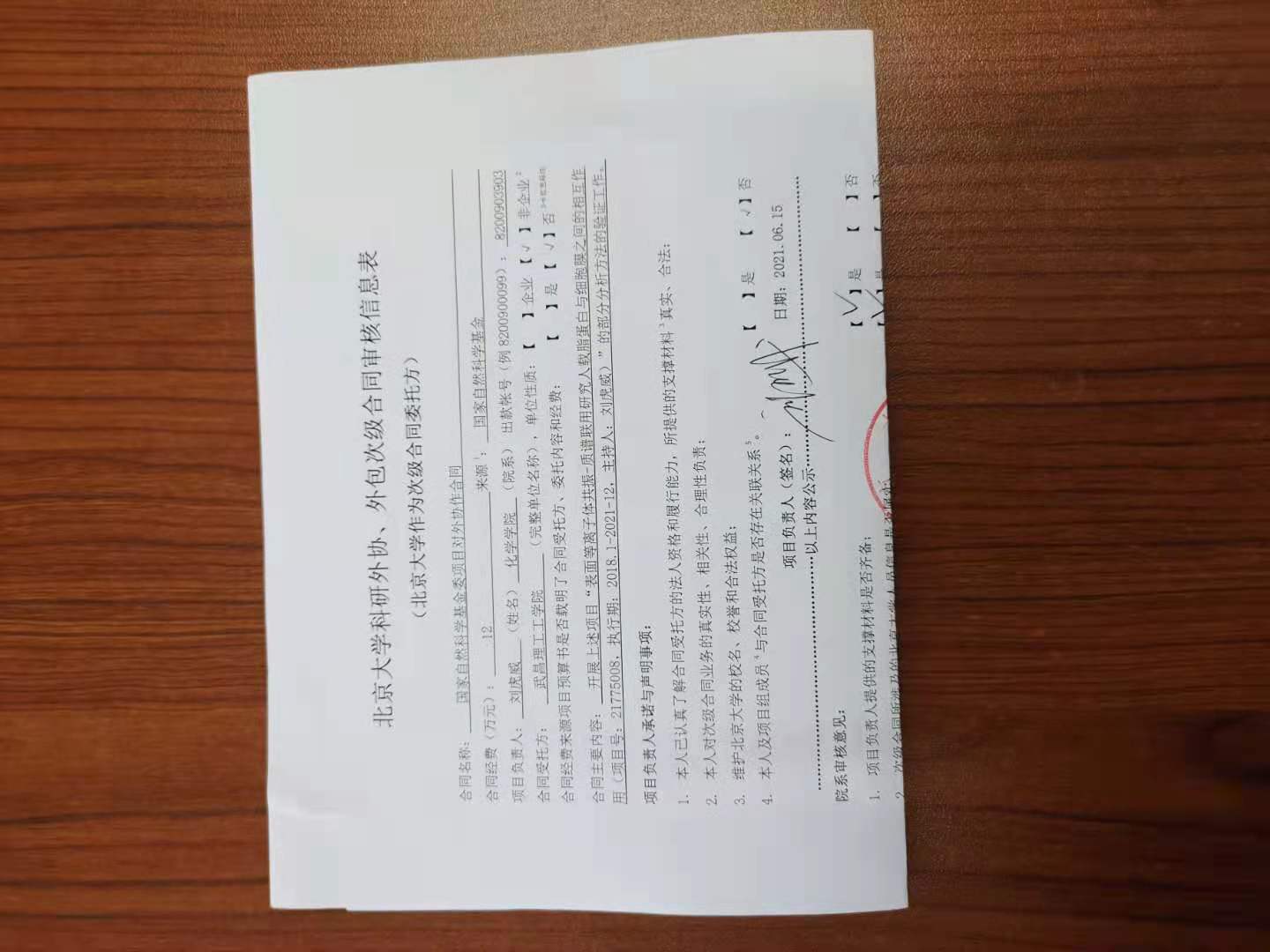根据《关于北京大学理工科科研次级合同管理的通知》,现将北京大学理工科科研次级合同国家自然科学基金委项目对外协作合同”的相关内容予以公示。公示时间:2021年06月18日-2021年06月22日(3个工作日)。合同相关纸质材料可经预约后到勺园5乙330办公室进行查阅。