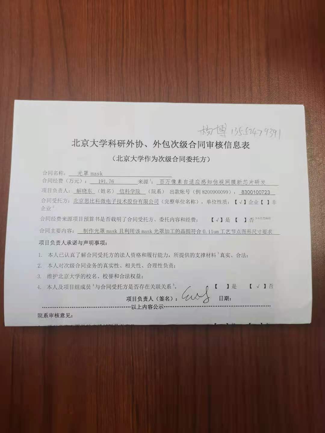 根据《关于北京大学理工科科研次级合同管理的通知》,现将北京大学理工科科研次级合同购光罩mask”的相关内容予以公示。公示时间:2021年06月21日-2021年06月23日(3个工作日)。合同相关纸质材料可经预约后到勺园5乙330办公室进行查阅。