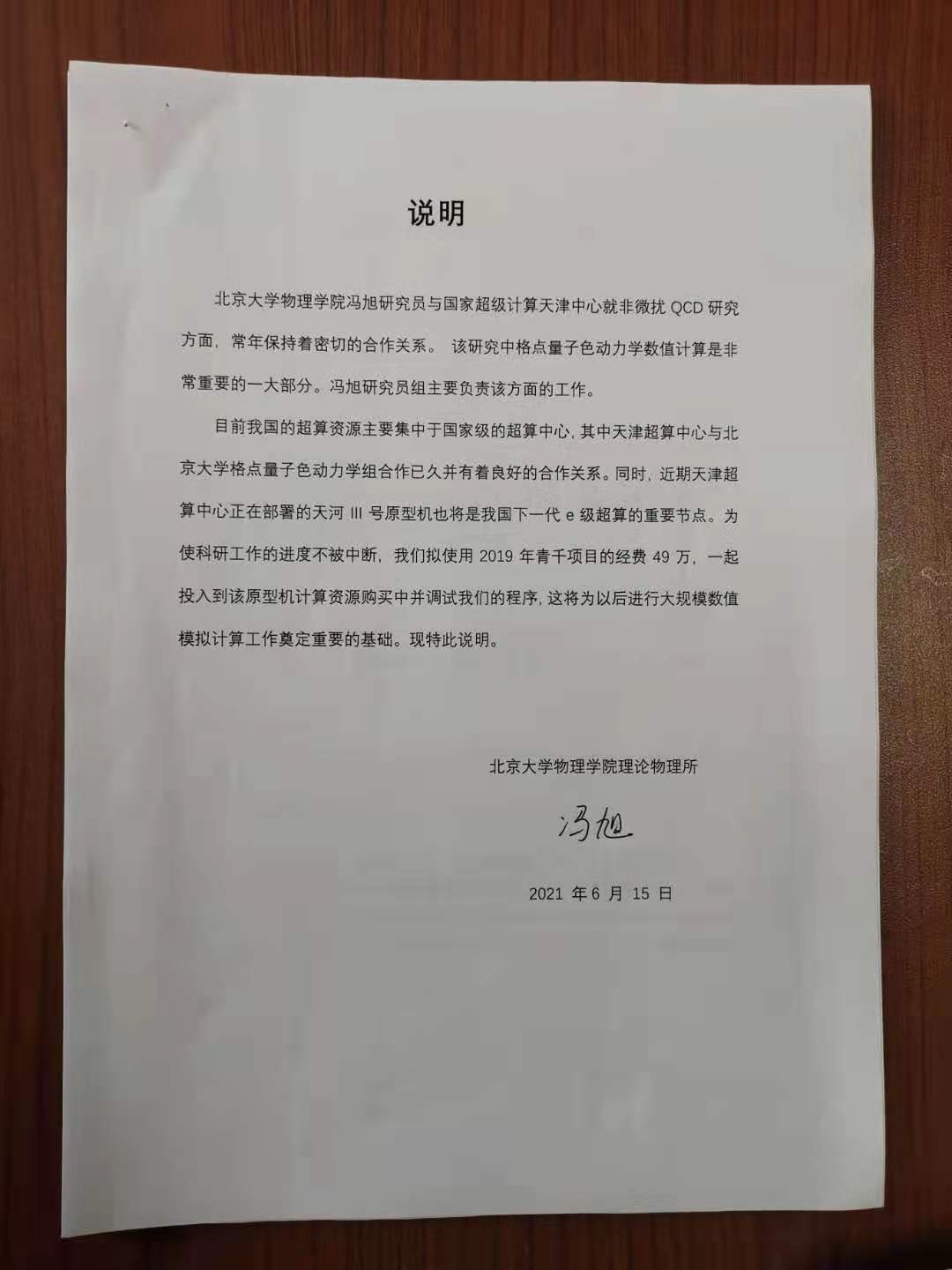 北京大学理工科科研次级合同“基于超级计算的非微扰QCD研究”公示