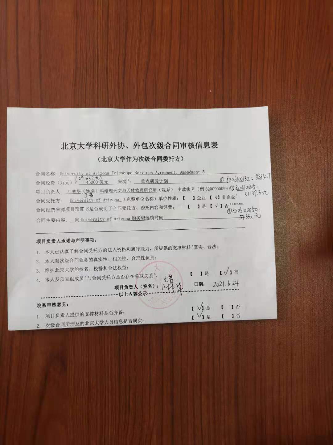 根据《关于北京大学理工科科研次级合同管理的通知》,现将北京大学理工科科研次级合同“University of Arizona Telescope Services Agreement, Amendment 5”相关内容予以公示。