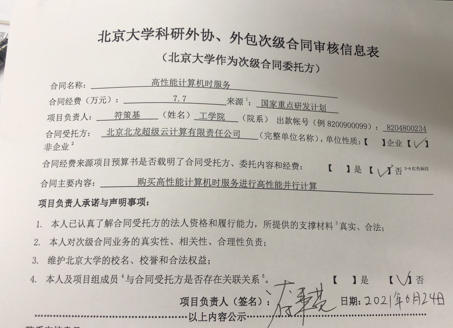根据《关于北京大学理工科科研次级合同管理的通知》,现将北京大学理工科科研次级合同“高性能计算机时服务”相关内容予以公示。