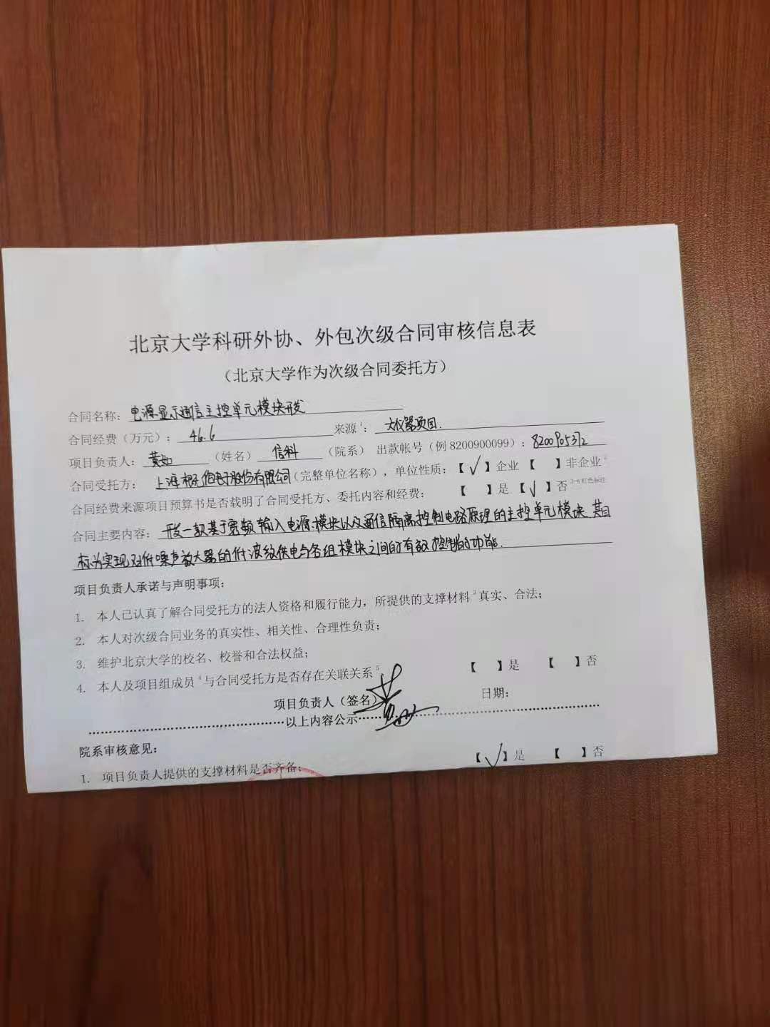 根据《关于北京大学理工科科研次级合同管理的通知》,现将北京大学理工科科研次级合同“电源显示通信主控单元模块开发”相关内容予以公示。