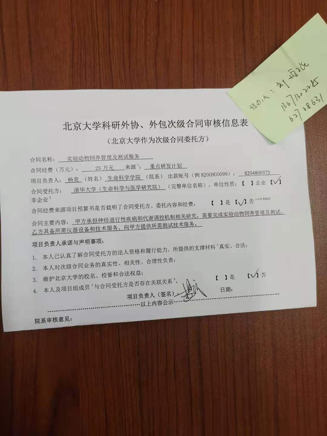 根据《关于北京大学理工科科研次级合同管理的通知》,现将北京大学理工科科研次级合同“实验动物饲养管理及测试服务”相关内容予以公示。