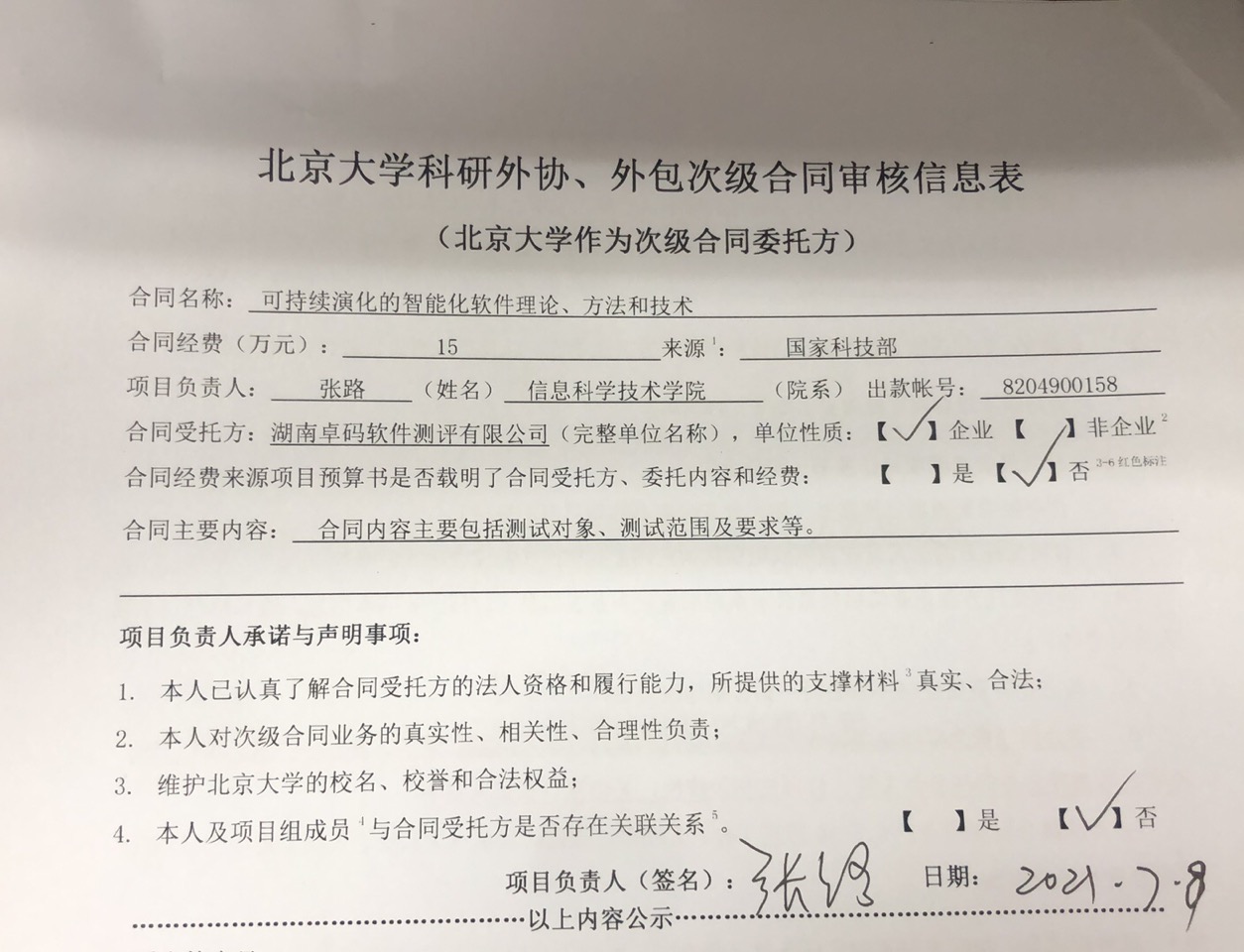 根据《关于北京大学理工科科研次级合同管理的通知》,现将北京大学理工科科研次级合同“可持续演化的智能化软件理论、方法和技术”相关内容予以公示。