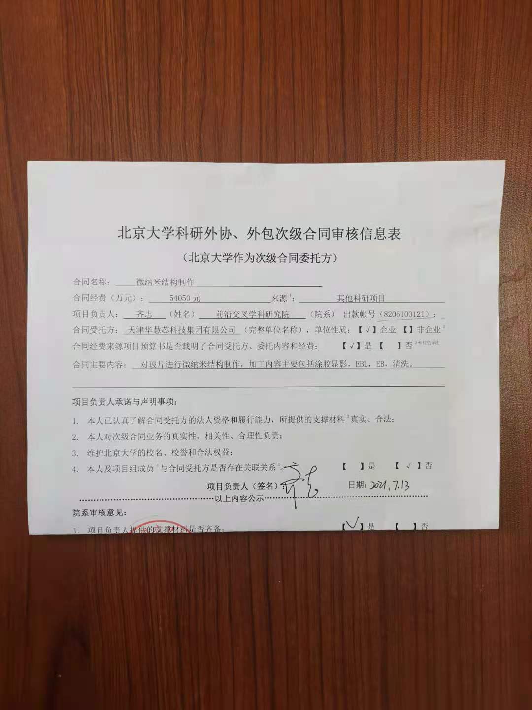 根据《关于北京大学理工科科研次级合同管理的通知》,现将北京大学理工科科研次级合同“微纳米结构制作”相关内容予以公示。
