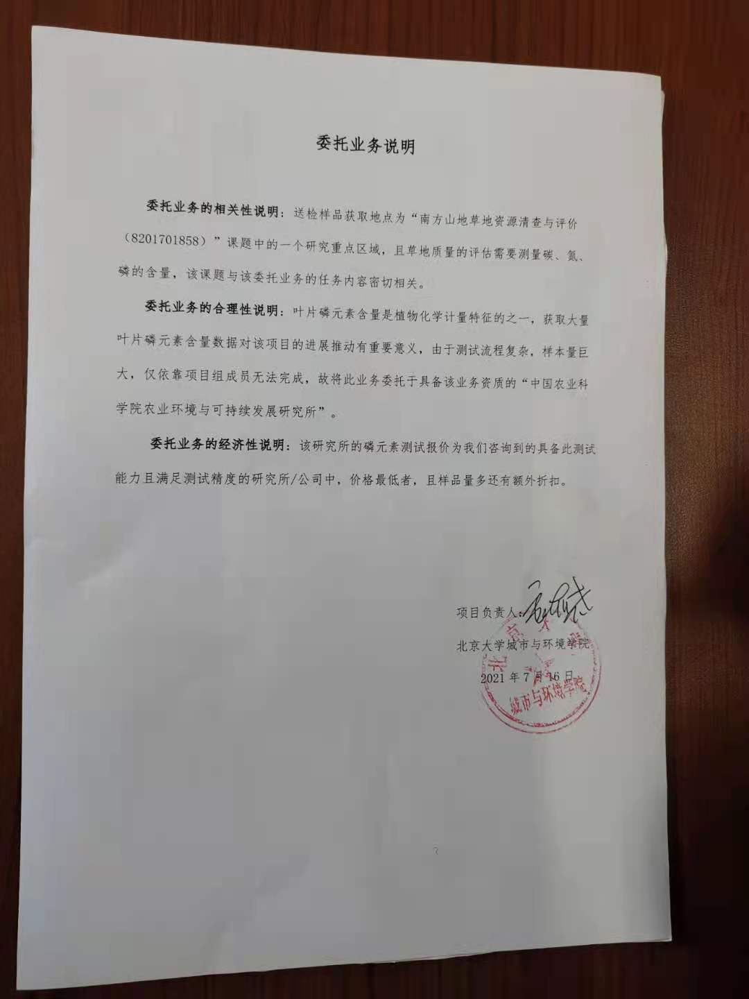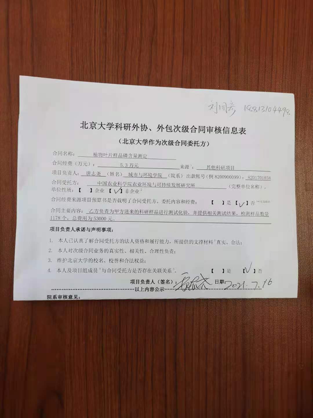 北京大学理工科科研次级合同“植物叶片样品磷含量测定”公示