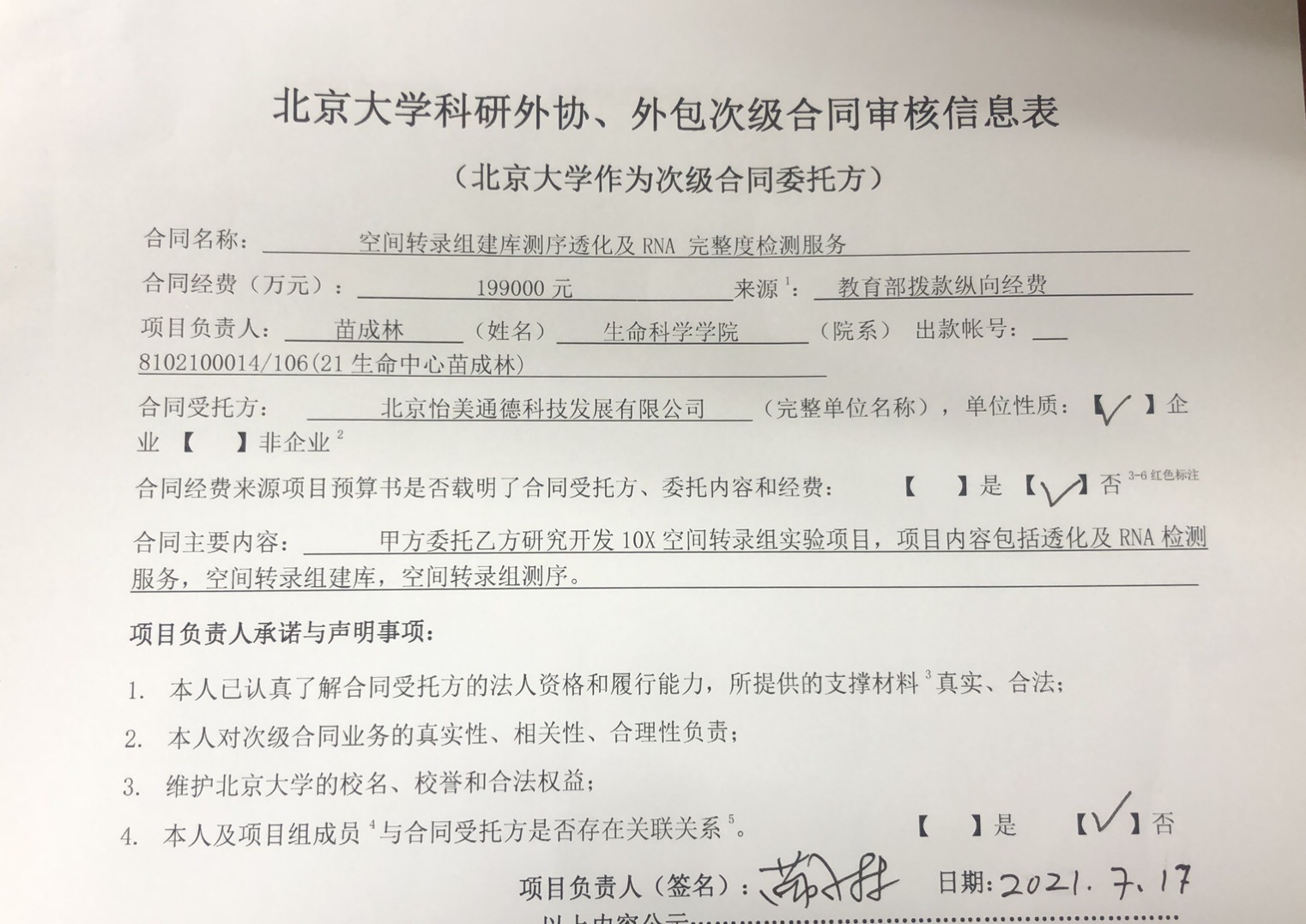 根据《关于北京大学理工科科研次级合同管理的通知》,现将北京大学理工科科研次级合同“空间转录组建库测序透化及RNA完整度检测服务”相关内容予以公示。
