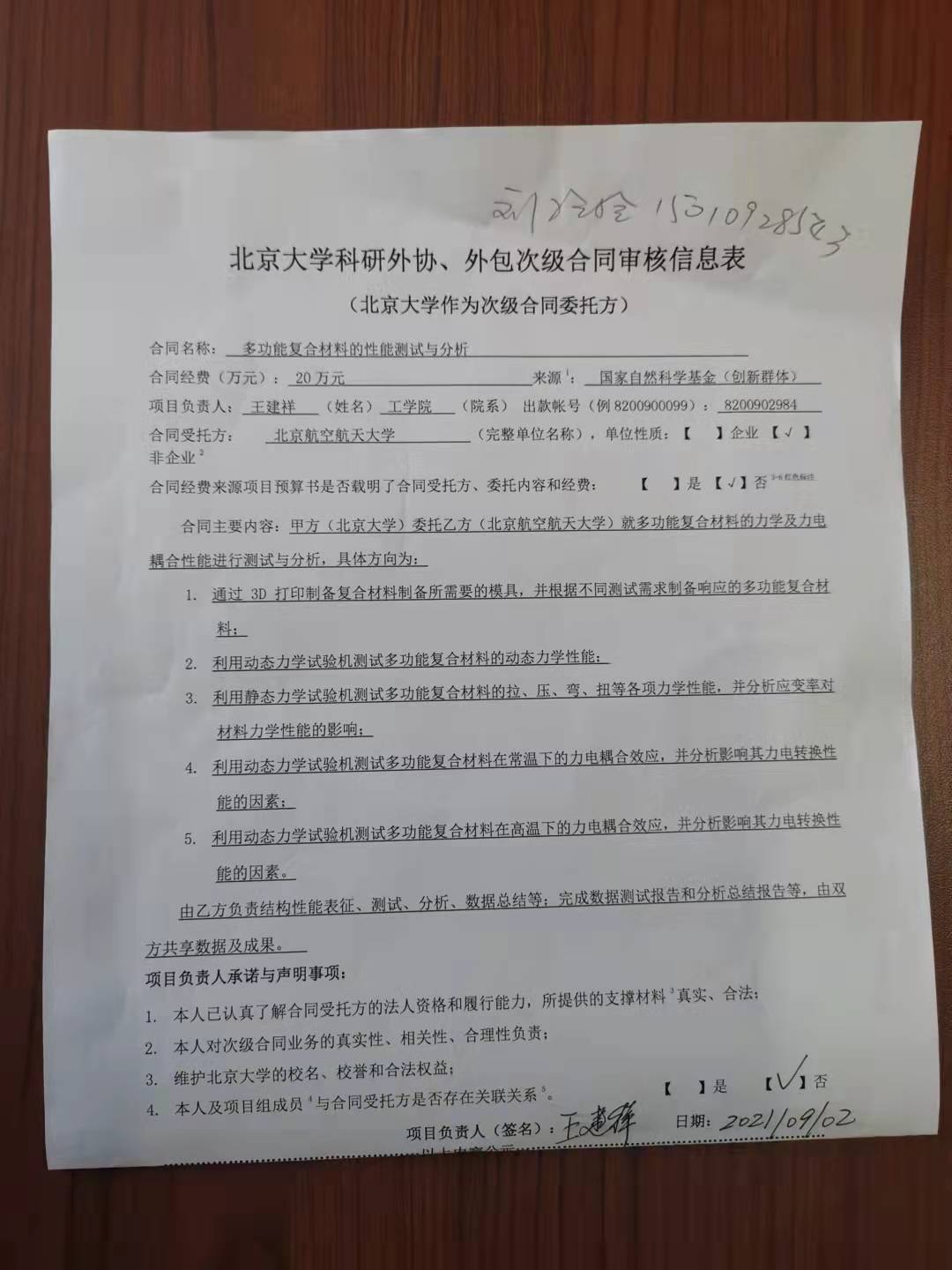 根据《关于北京大学理工科科研次级合同管理的通知》,现将北京大学理工科科研次级合同“多功能复合材料的性能测试分析”相关内容予以公示。
