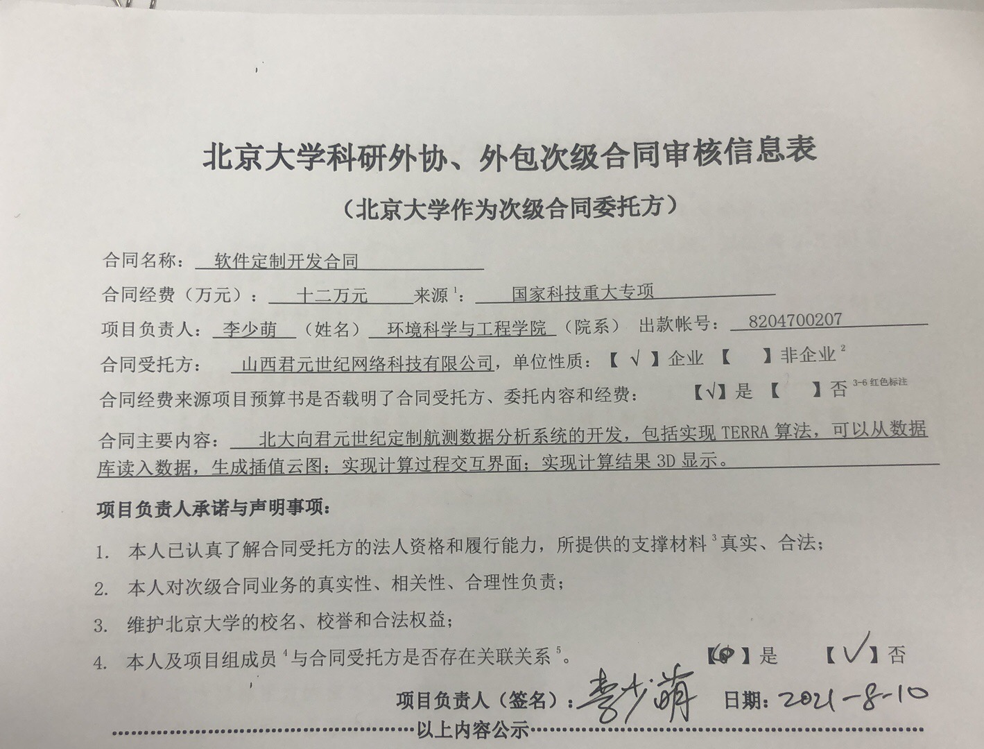 根据《关于北京大学理工科科研次级合同管理的通知》,现将北京大学理工科科研次级合同“软件定制开发合同”相关内容予以公示。