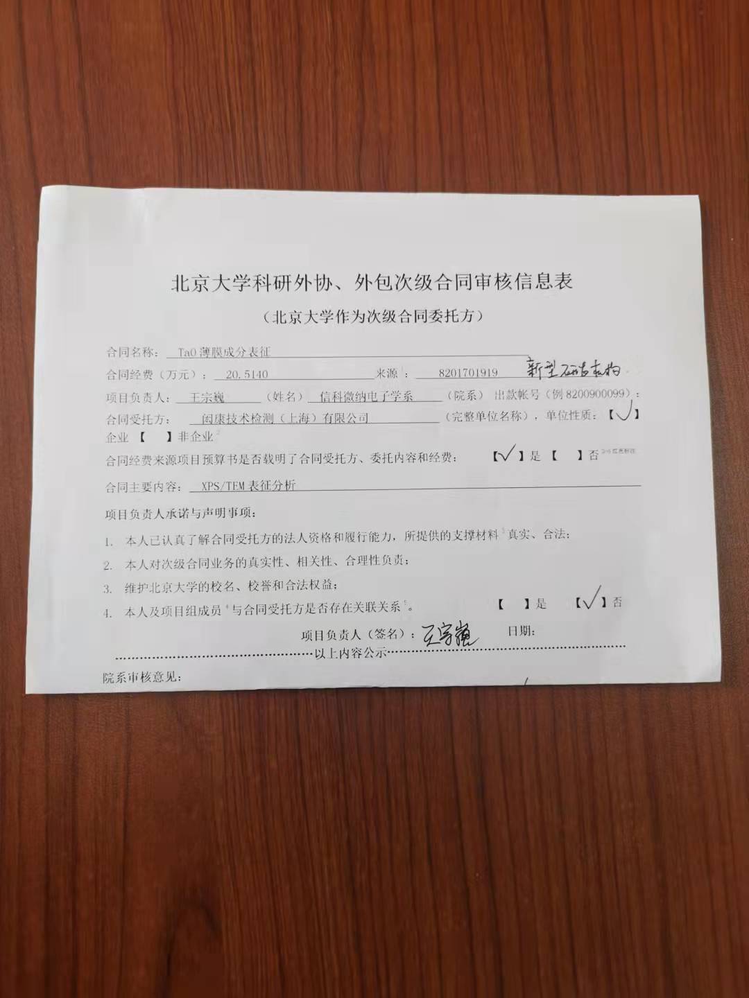 根据《关于北京大学理工科科研次级合同管理的通知》,现将北京大学理工科科研次级合同“TaO薄膜成分表征”相关内容予以公示。