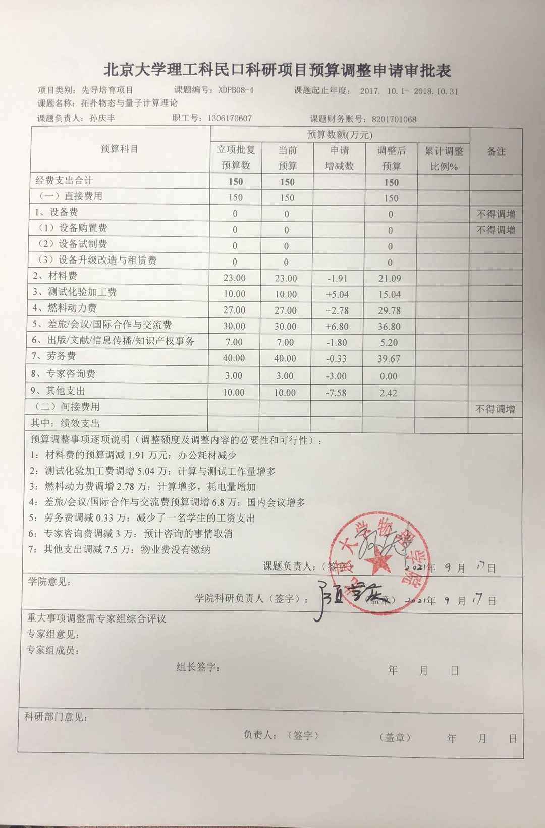 根据《关于实施北京大学理工科民口科研项目预算调剂规定的通知》,现将北京大学理工科民口科研项目“先导培育项目”预算调整申请审批表相关内容予以公示。