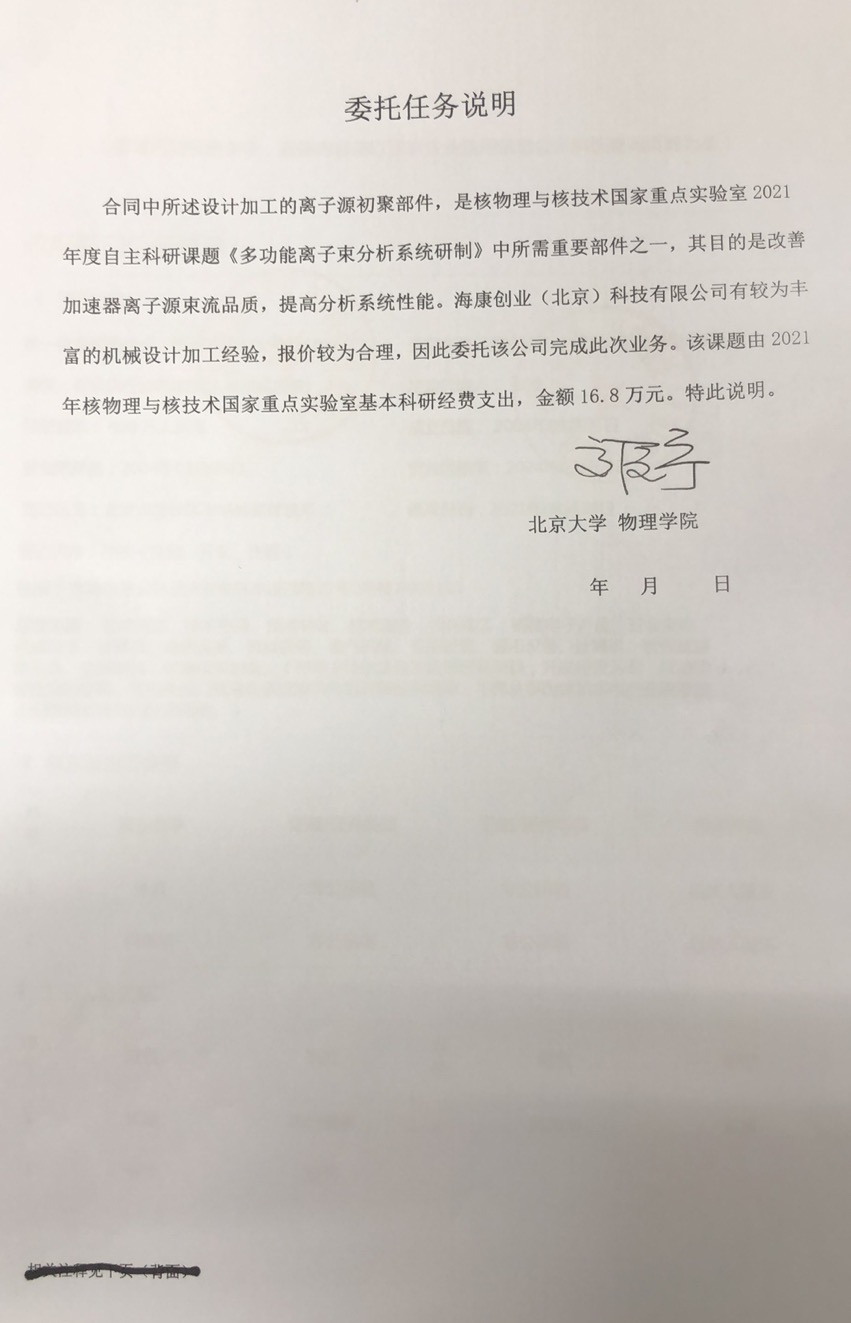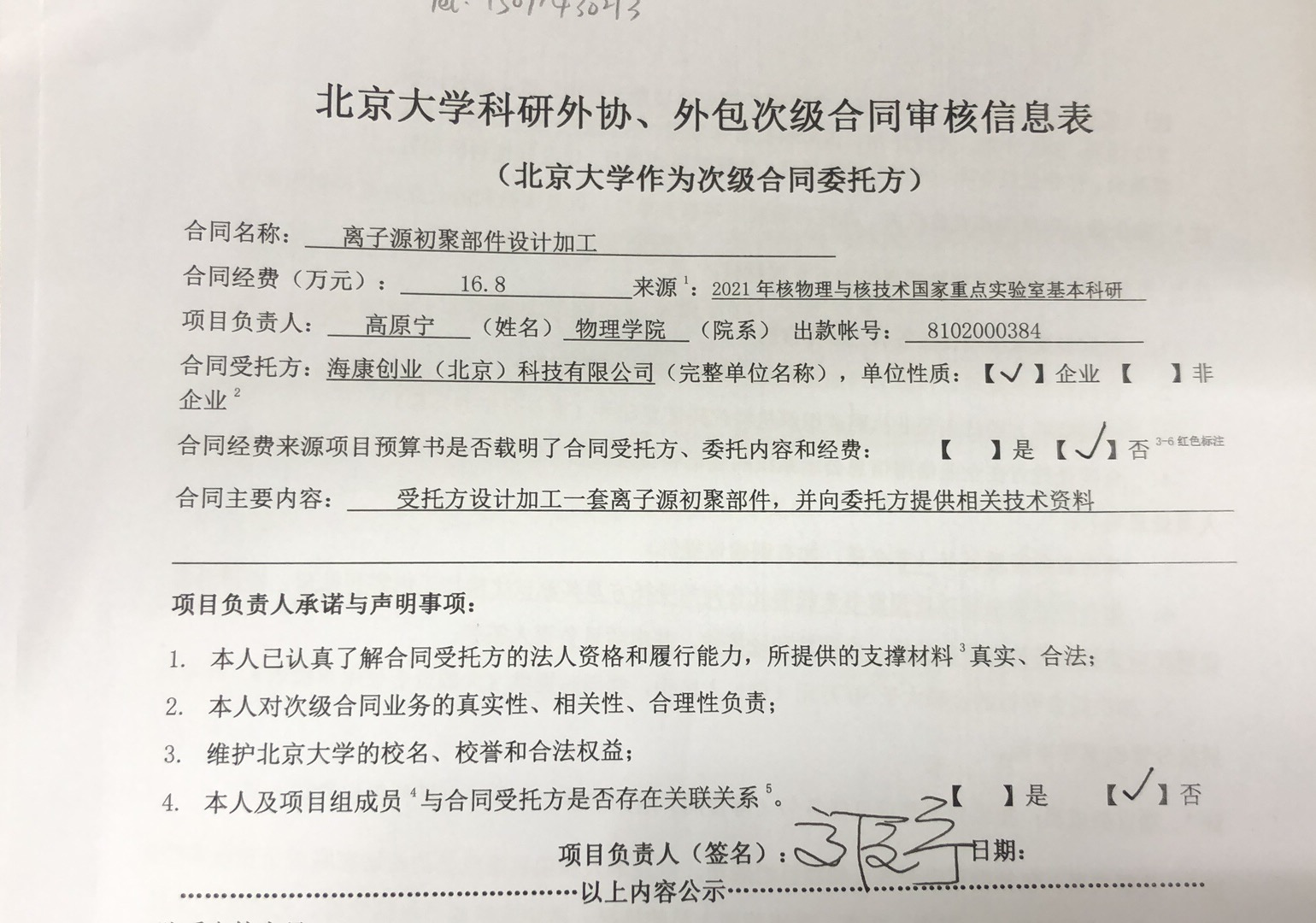 根据《关于北京大学理工科科研次级合同管理的通知》,现将北京大学理工科科研次级合同“离子源初聚部件设计加工”相关内容予以公示。