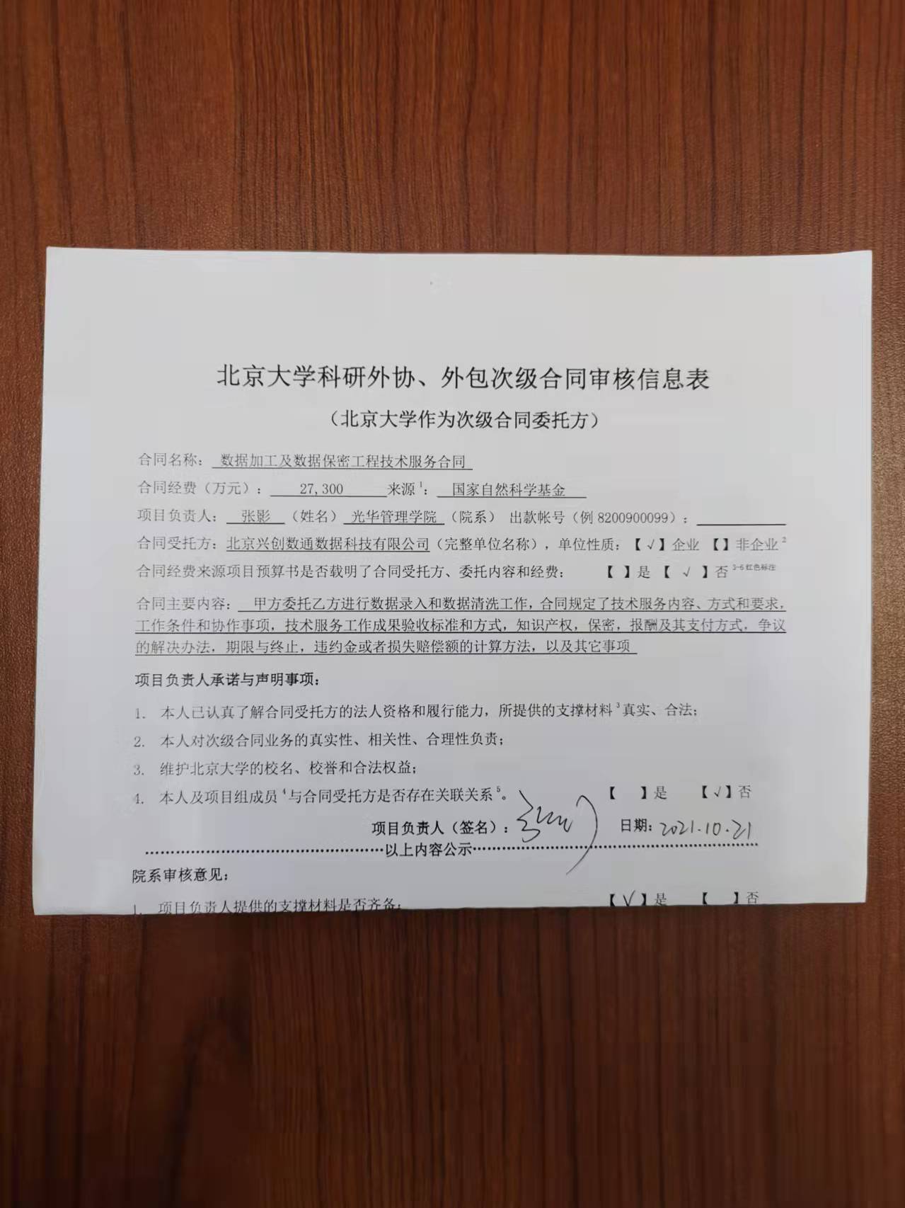 根据《关于北京大学理工科科研次级合同管理的通知》,现将北京大学理工科科研次级合同“数据加工及数据保密工程技术服务合同”相关内容予以公示。