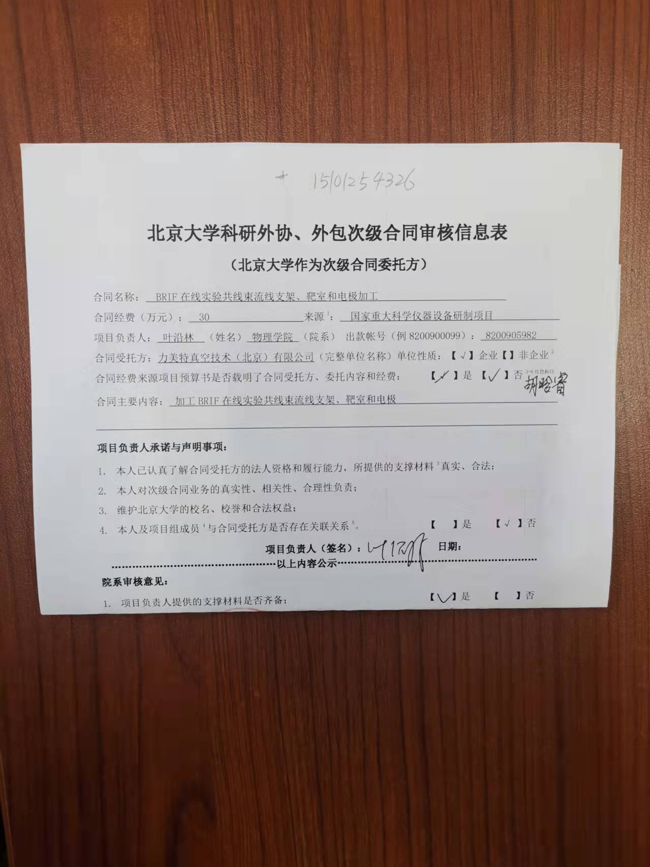 根据《关于北京大学理工科科研次级合同管理的通知》,现将北京大学理工科科研次级合同“BRIF在线实验共线束流线支架、靶室和电极加工”相关内容予以公示。