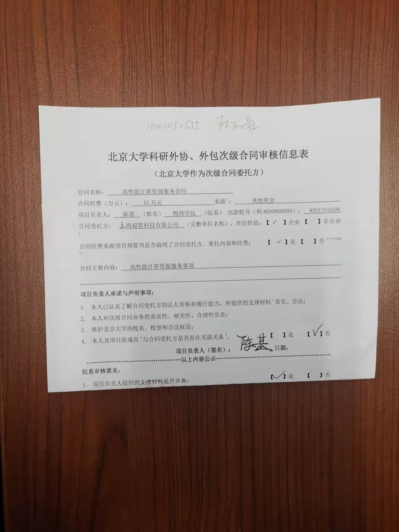 根据《关于北京大学理工科科研次级合同管理的通知》,现将北京大学理工科科研次级合同“高性能计算资源服务合同”相关内容予以公示。