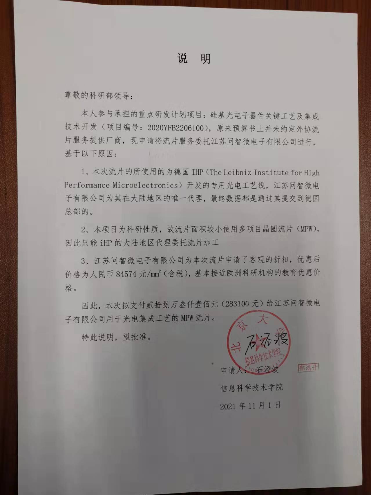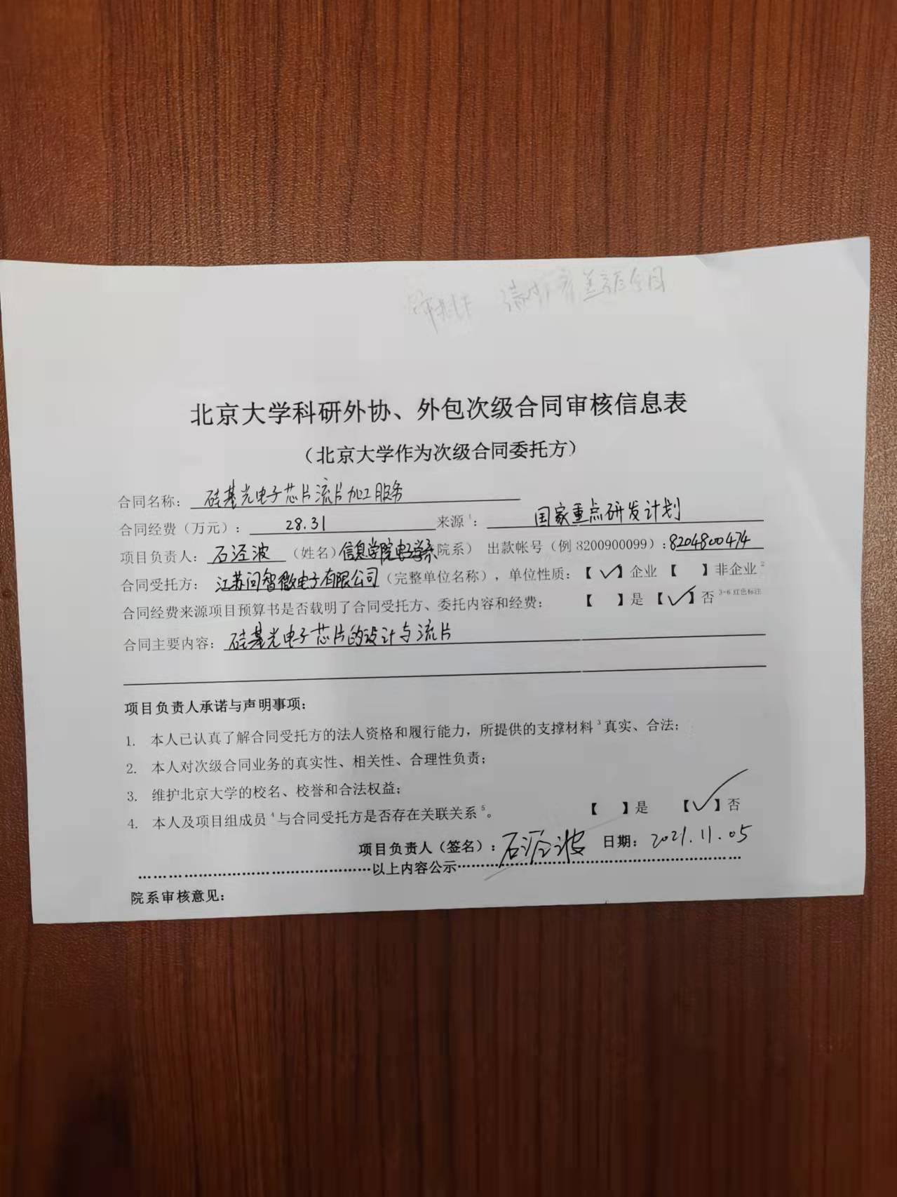 根据《关于北京大学理工科科研次级合同管理的通知》,现将北京大学理工科科研次级合同“硅基光电子芯片流片加工服务”相关内容予以公示。