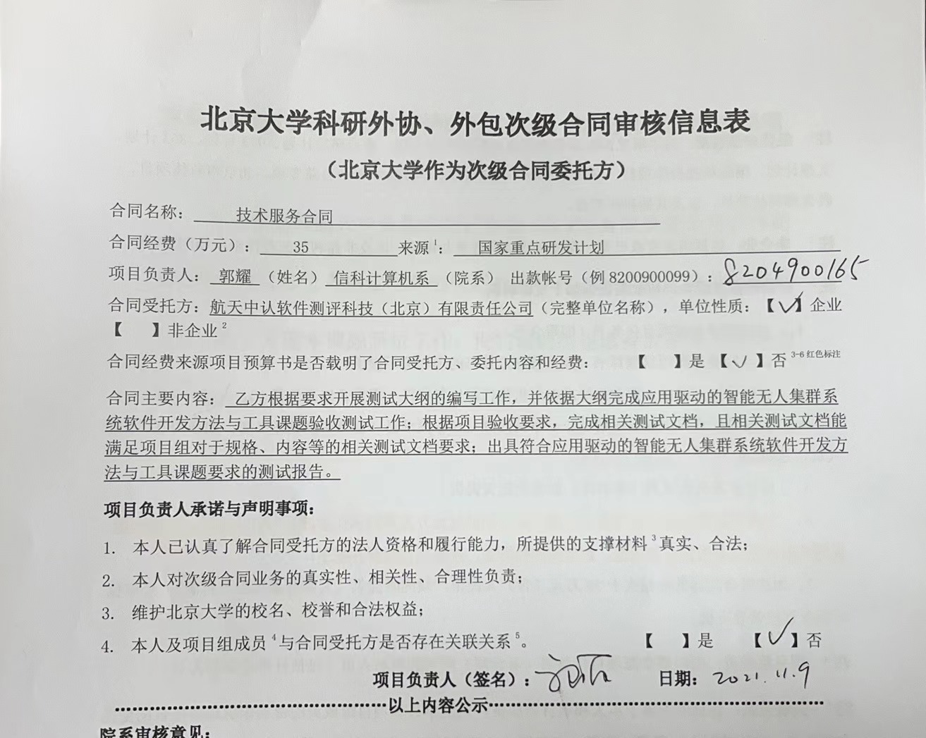 根据《关于北京大学理工科科研次级合同管理的通知》,现将北京大学理工科科研次级合同“技术服务合同”相关内容予以公示。