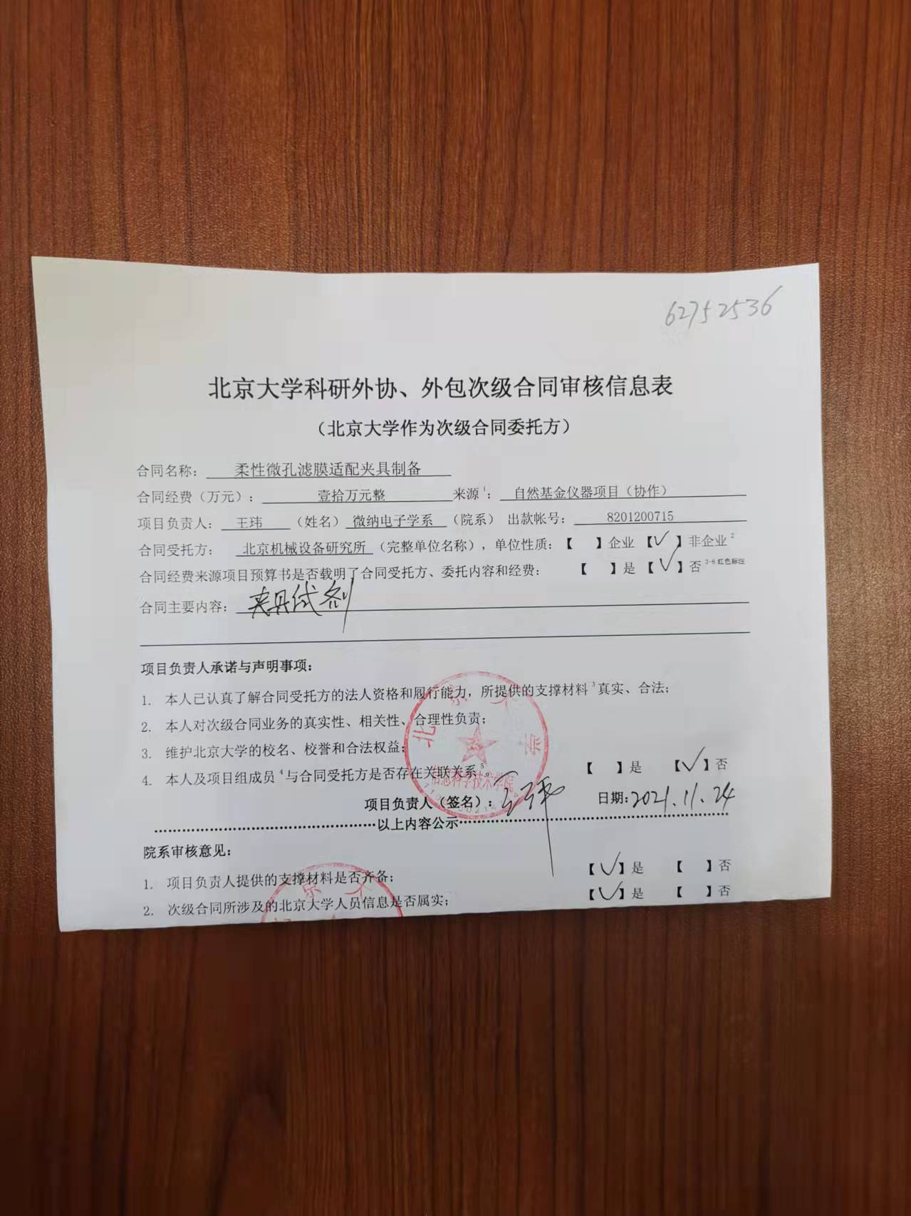 根据《关于北京大学理工科科研次级合同管理的通知》,现将北京大学理工科科研次级合同“柔性微孔滤膜适配夹具制备”相关内容予以公示。