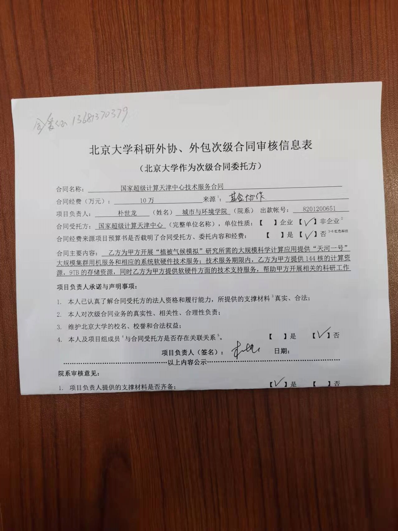 根据《关于北京大学理工科科研次级合同管理的通知》,现将北京大学理工科科研次级合同“国家超级计算天津中心技术服务合同”相关内容予以公示。
